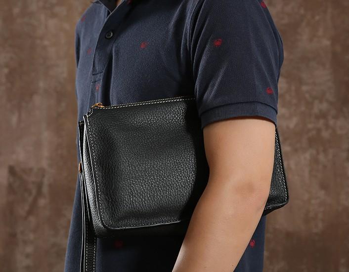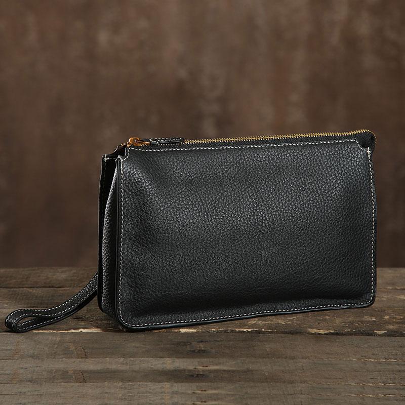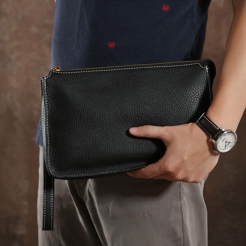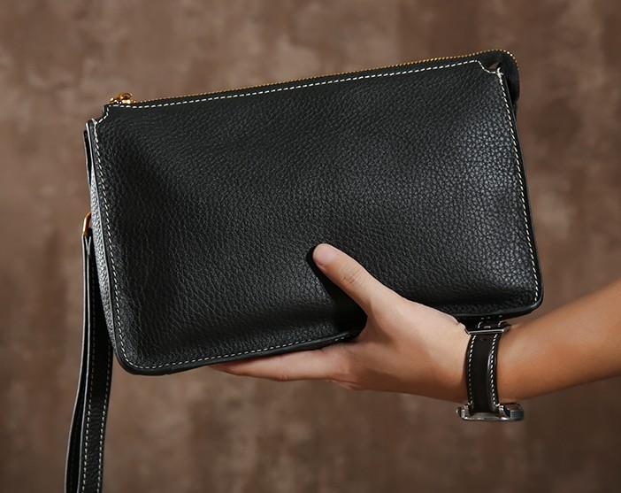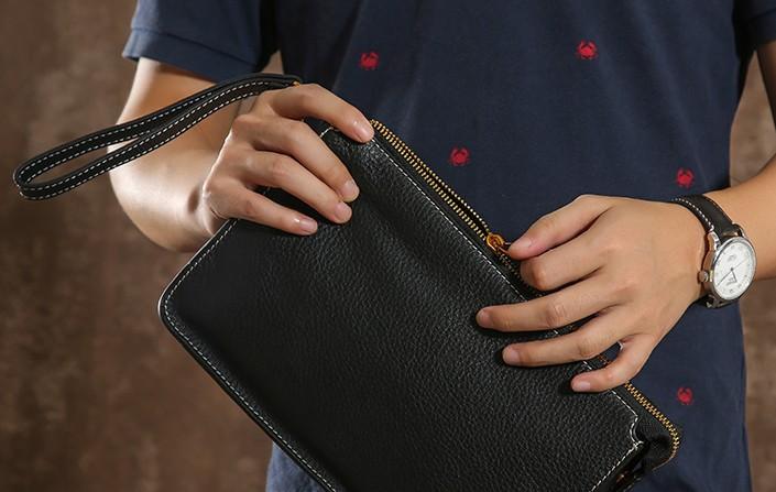 Design: Genuine Leather Mens Clutch Cool Wallet Zipper Clutch Wristlet Bag Wallet for Men