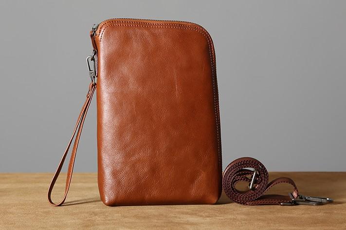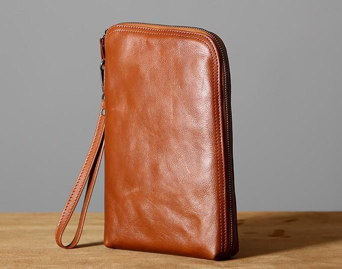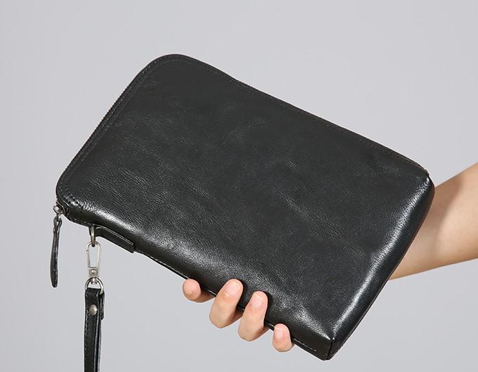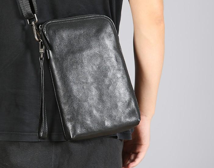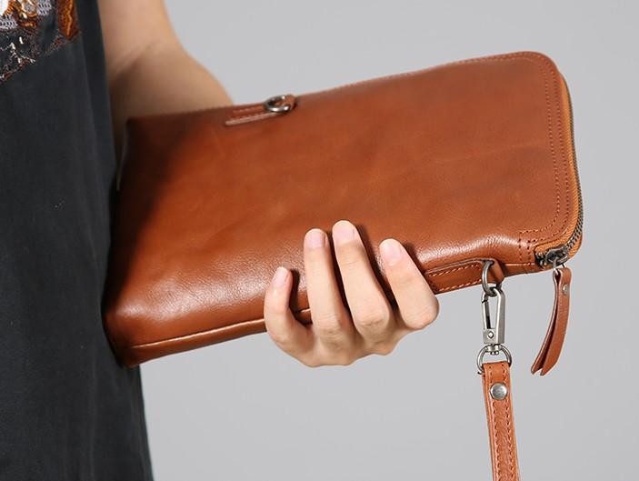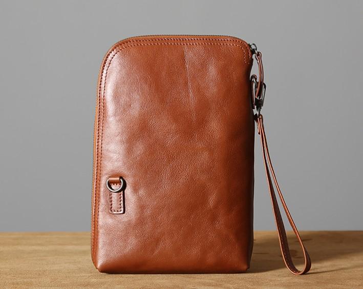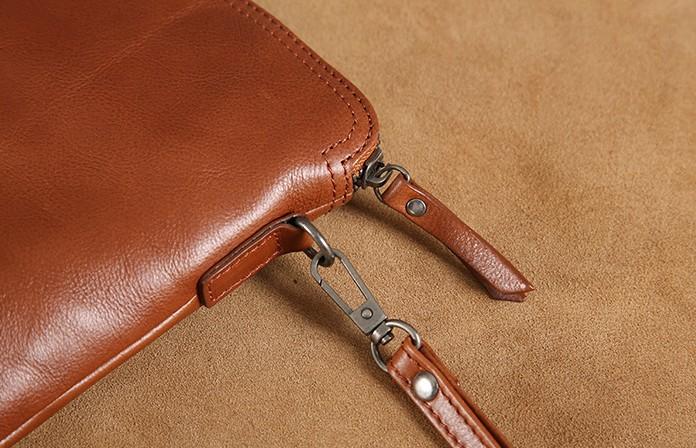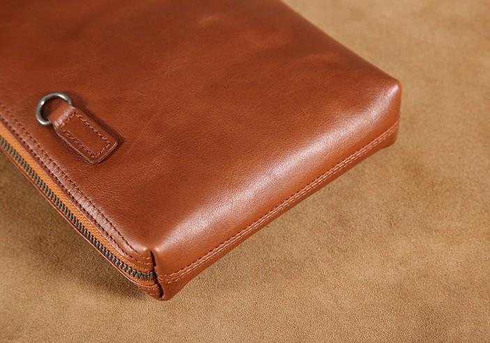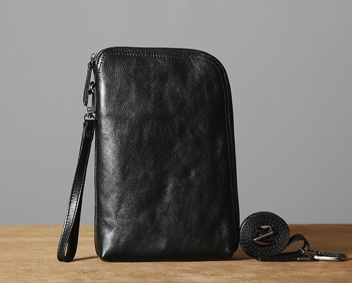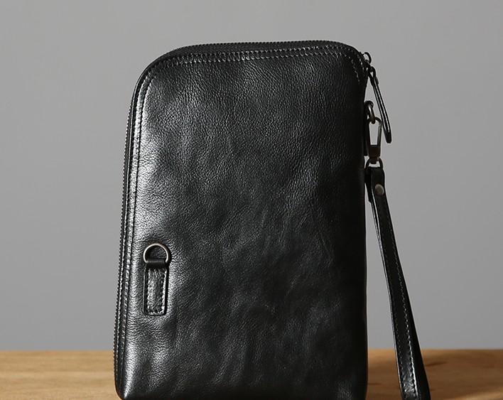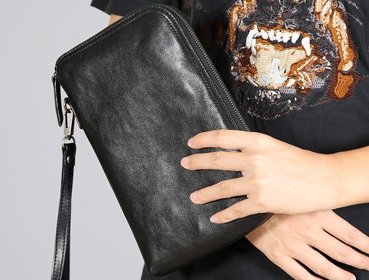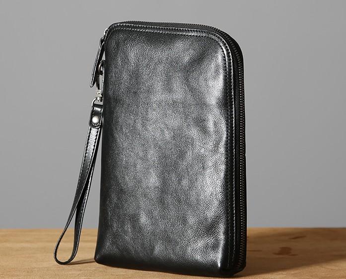 Design: Genuine Leather Mens Clutch Cool Wallet Zipper Clutch Messenger Bag Chest Bag Wristlet Bag Wallet for Men