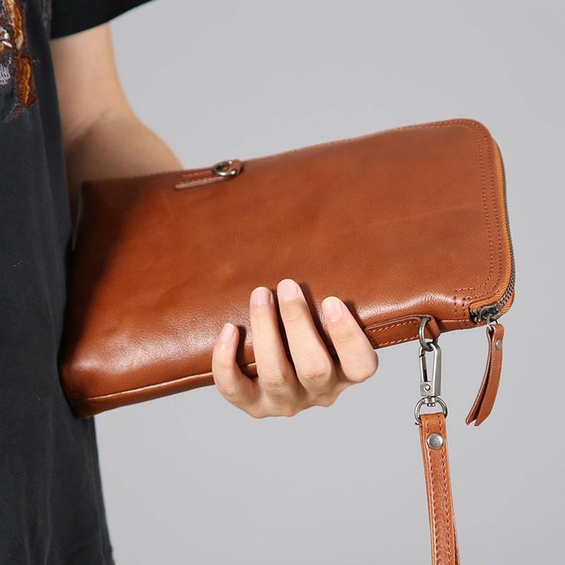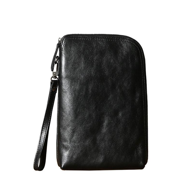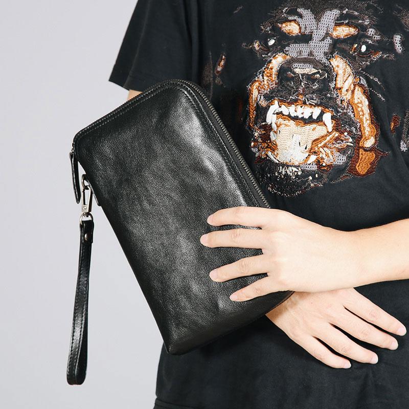 Genuine Leather Mens Clutch Cool Wallet Zipper Clutch Messenger Bag Chest Bag Wristlet Bag Wallet for Men