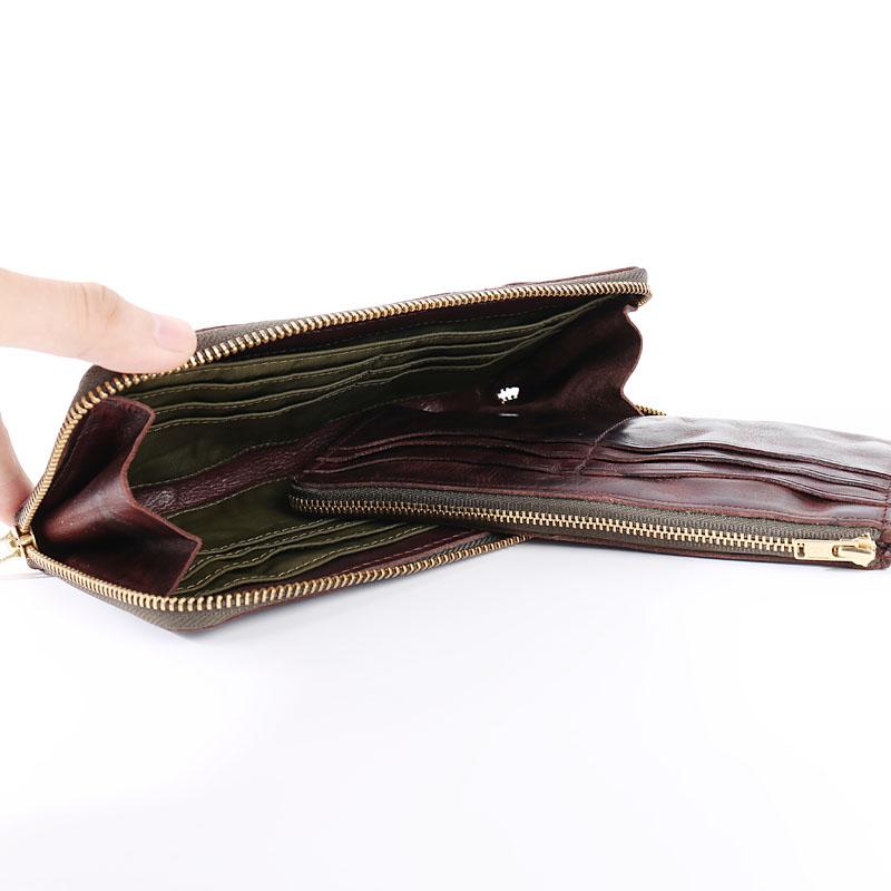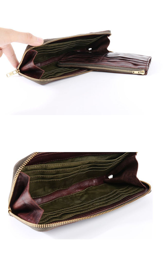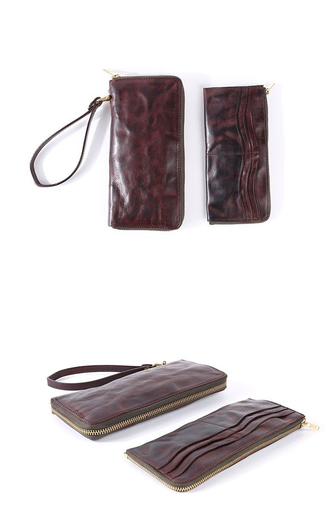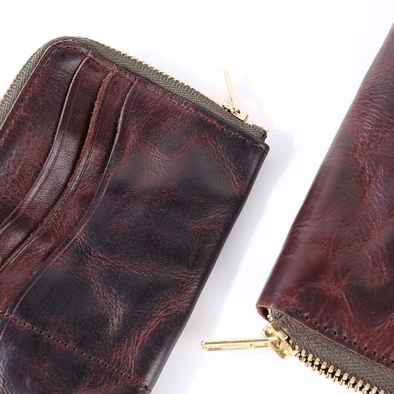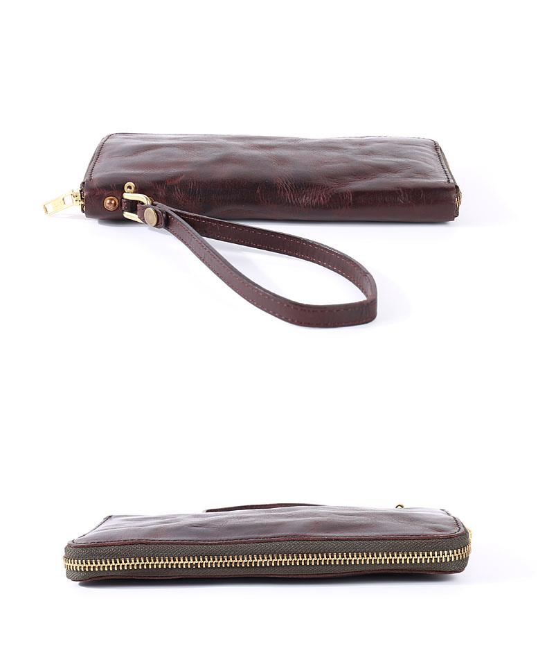 Design: Genuine Leather Mens Clutch Simple Brown Wallet Zipper Clutch Wristlet Phone Bagfor Men