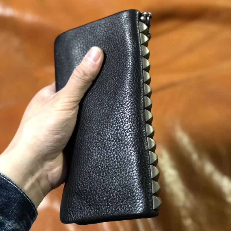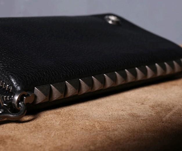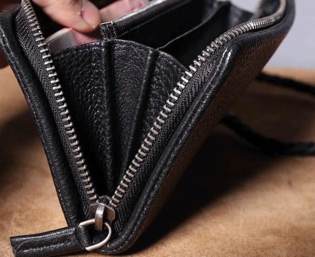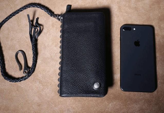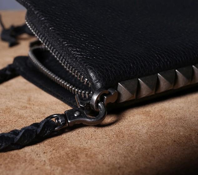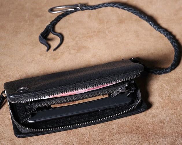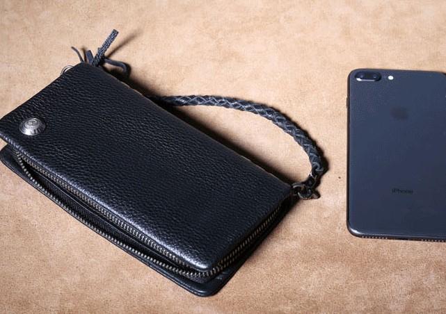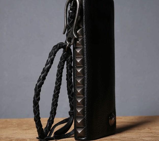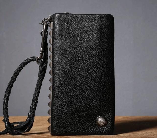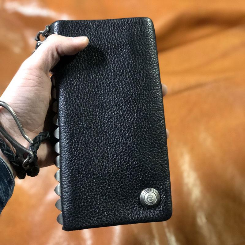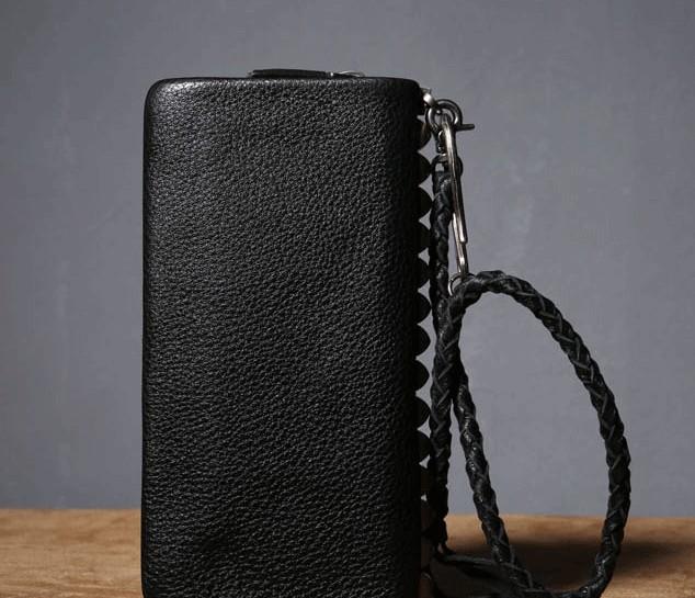 Design: Genuine Leather Mens Cool Biker Chain Wallet Long Leather Wallet Clutch Wristlet Wallet for Men