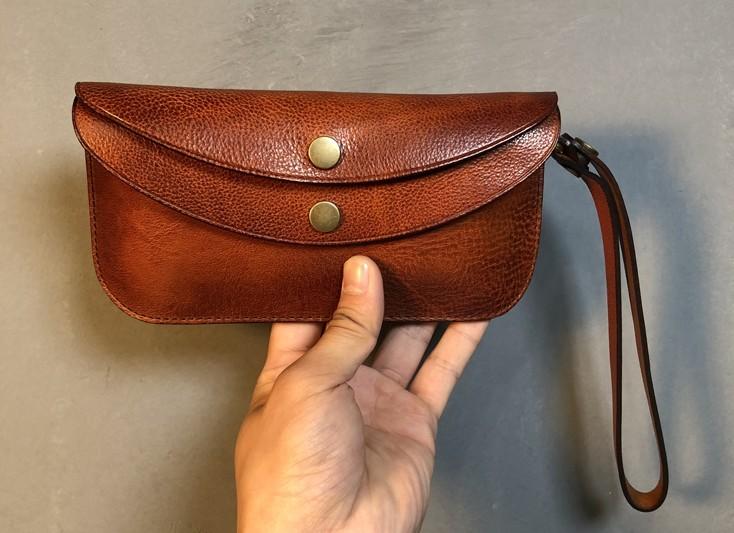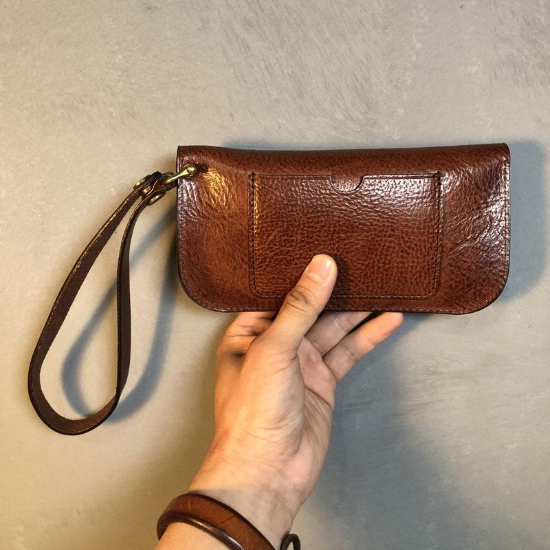 Design: Genuine Leather Mens Cool Long Leather Wallet Biker Clutch Wristlet Wallet for Men