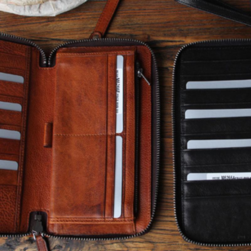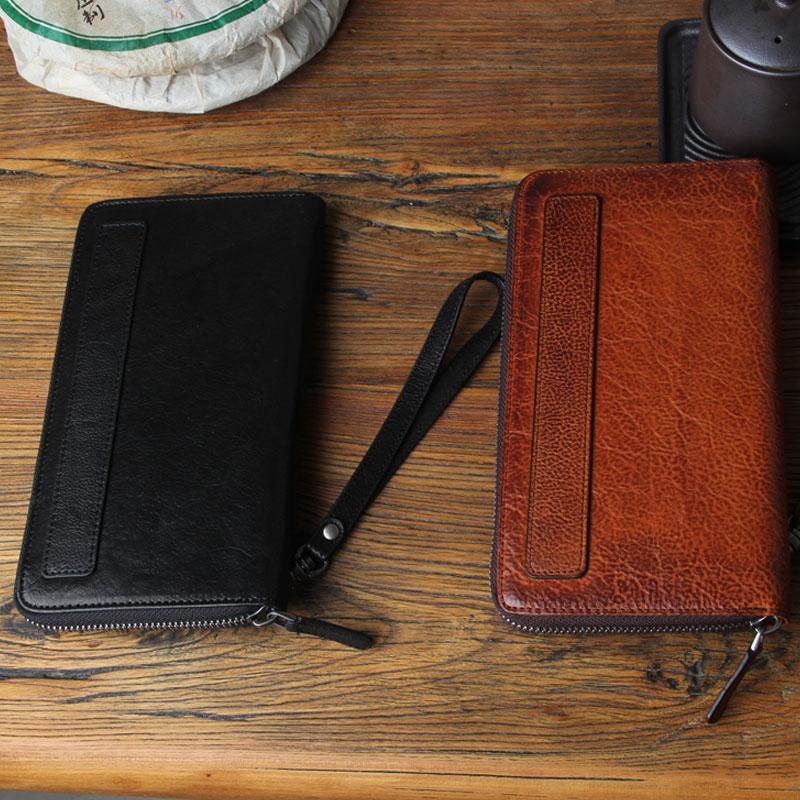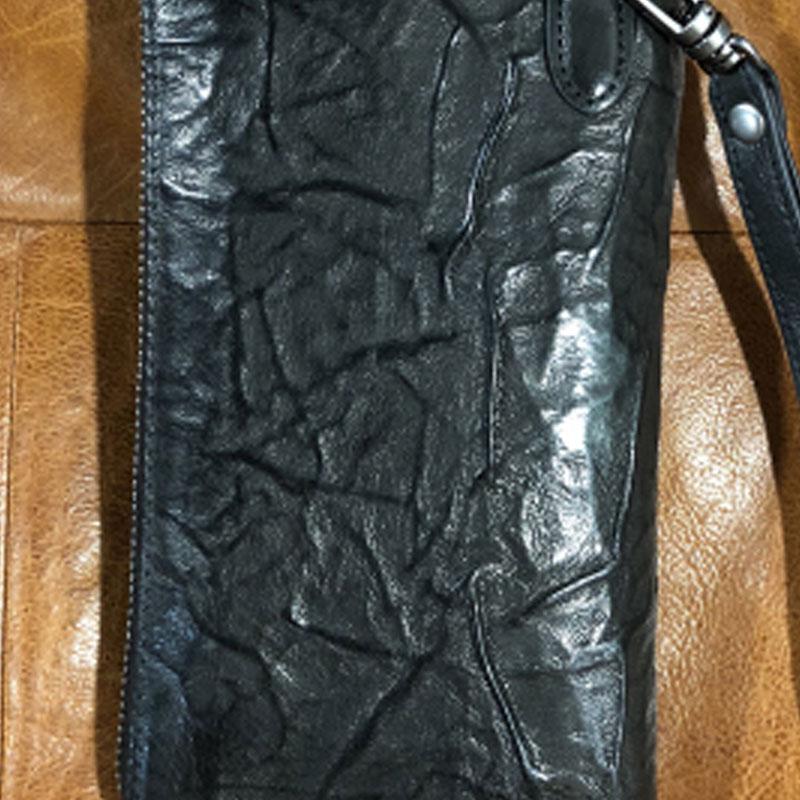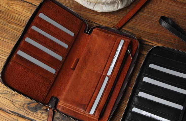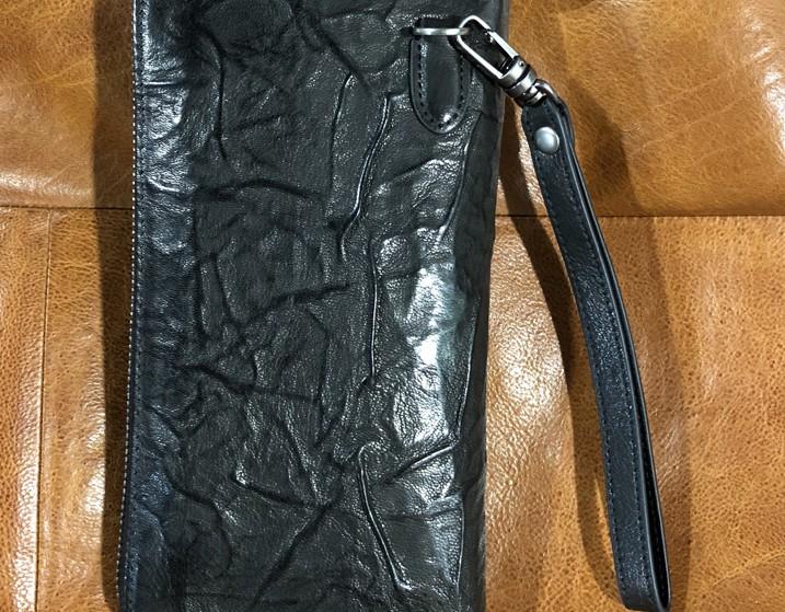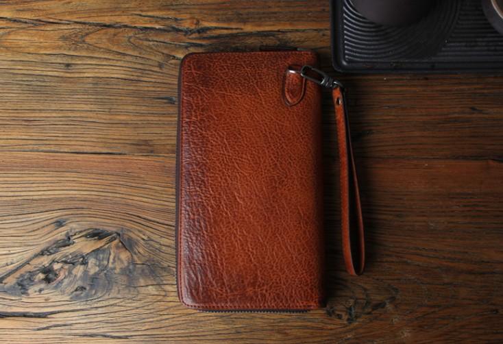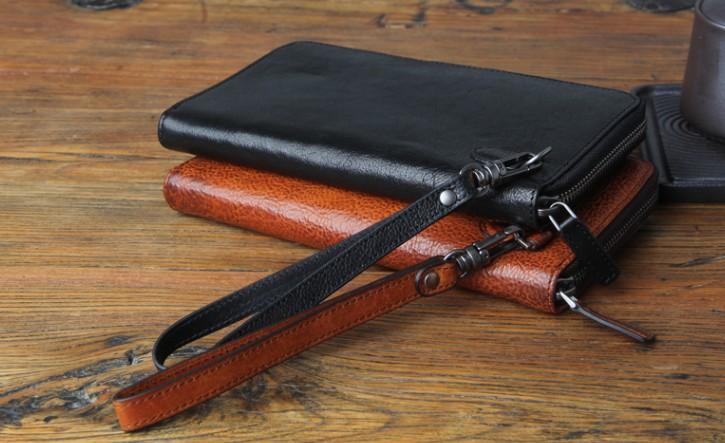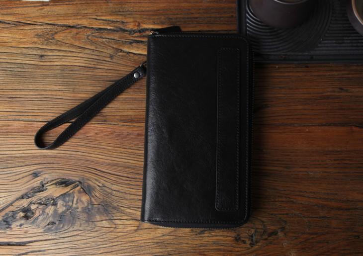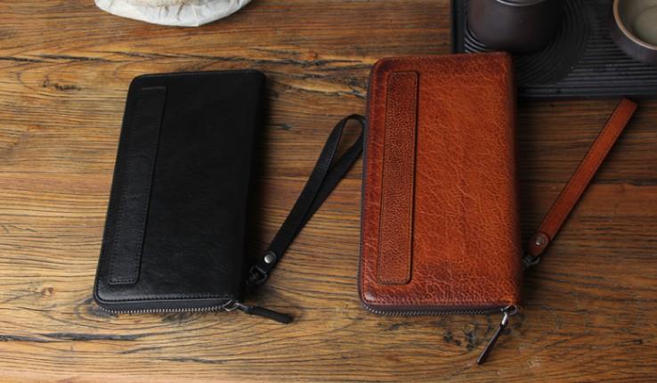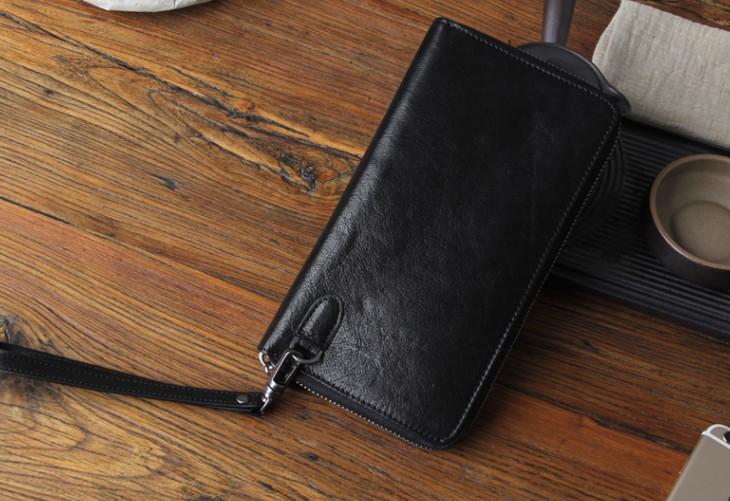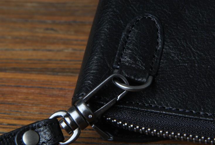 Design: Genuine Leather Mens Cool Long Leather Wallet Biker Wallet Zipper Clutch Wristlet Wallet for Men