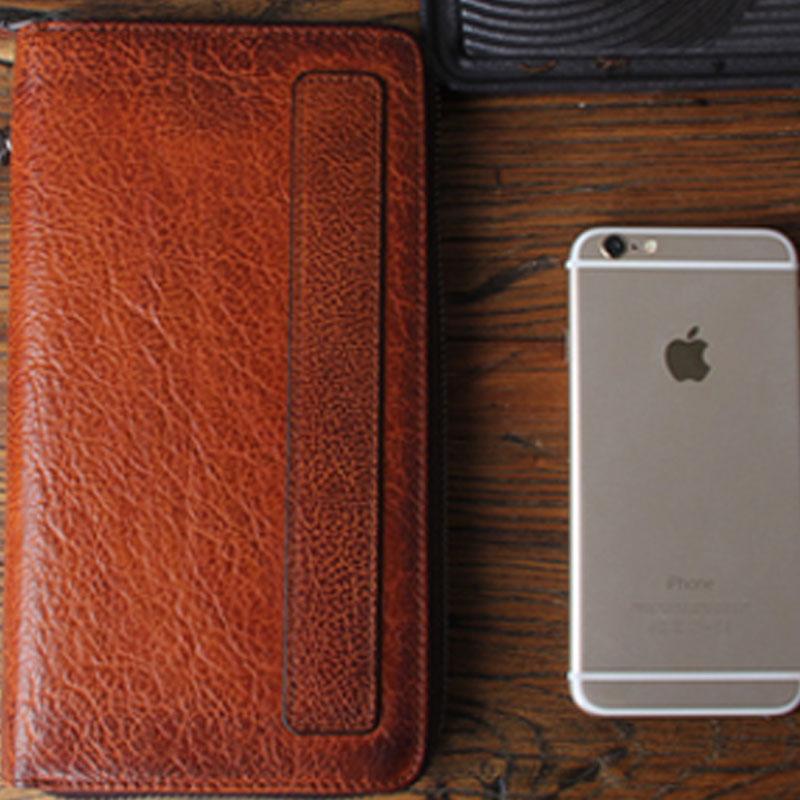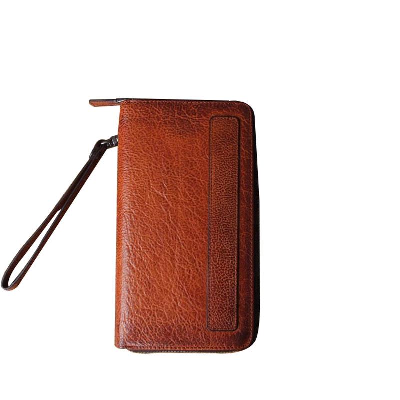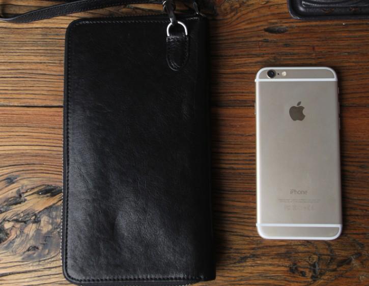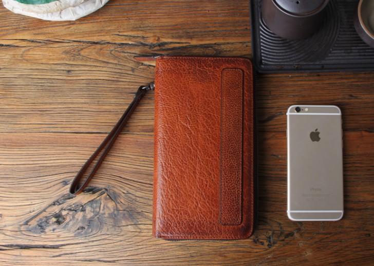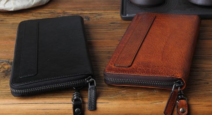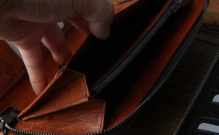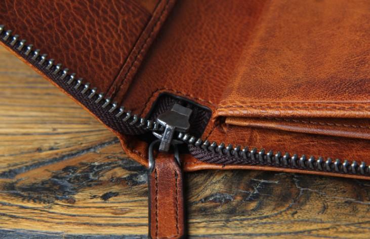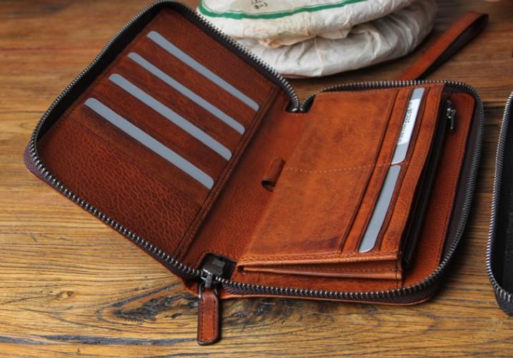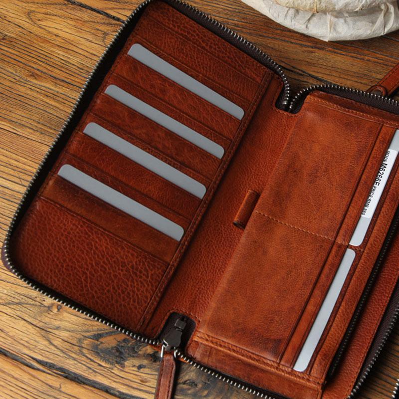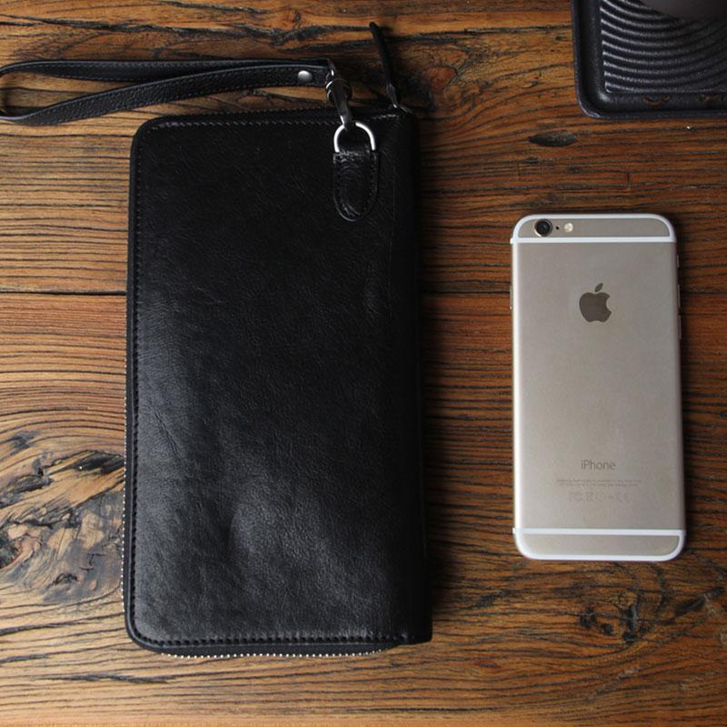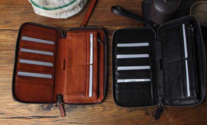Design: Genuine Leather Mens Cool Long Leather Wallet Biker Wallet Zipper Clutch Wristlet Wallet for Men