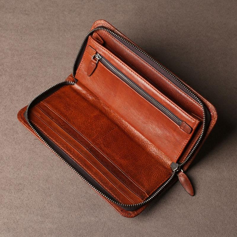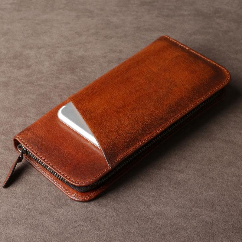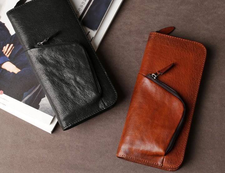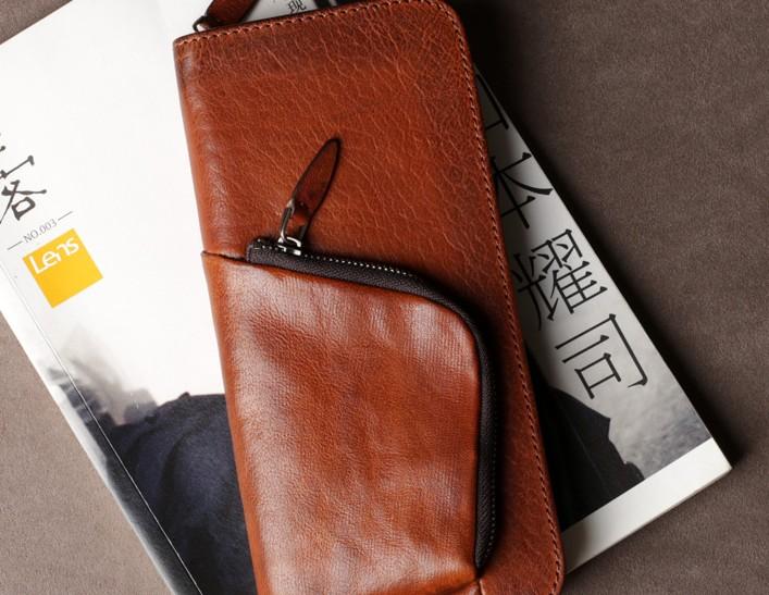 Design: Genuine Leather Mens Cool Long Leather Wallet Cards Phone Zipper Clutch Wristlet Wallet for Men