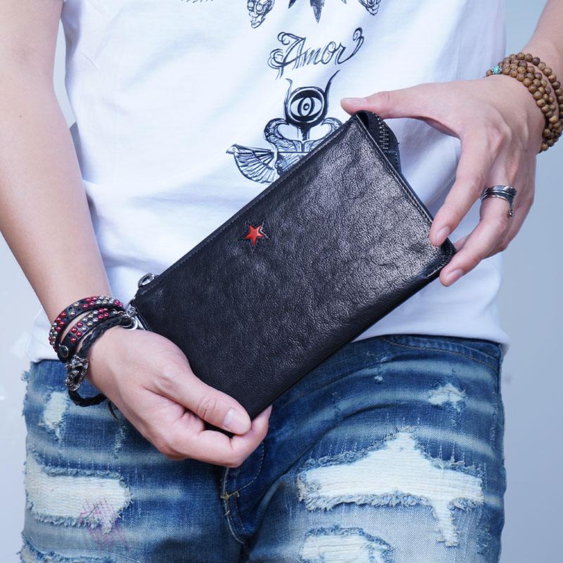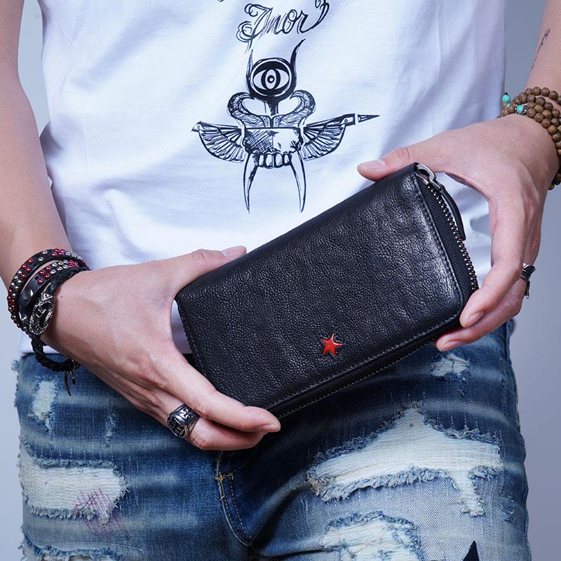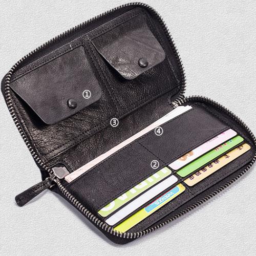 Design: Genuine Leather Mens Cool Long Leather Wallet Zipper Clutch Wallet for Men