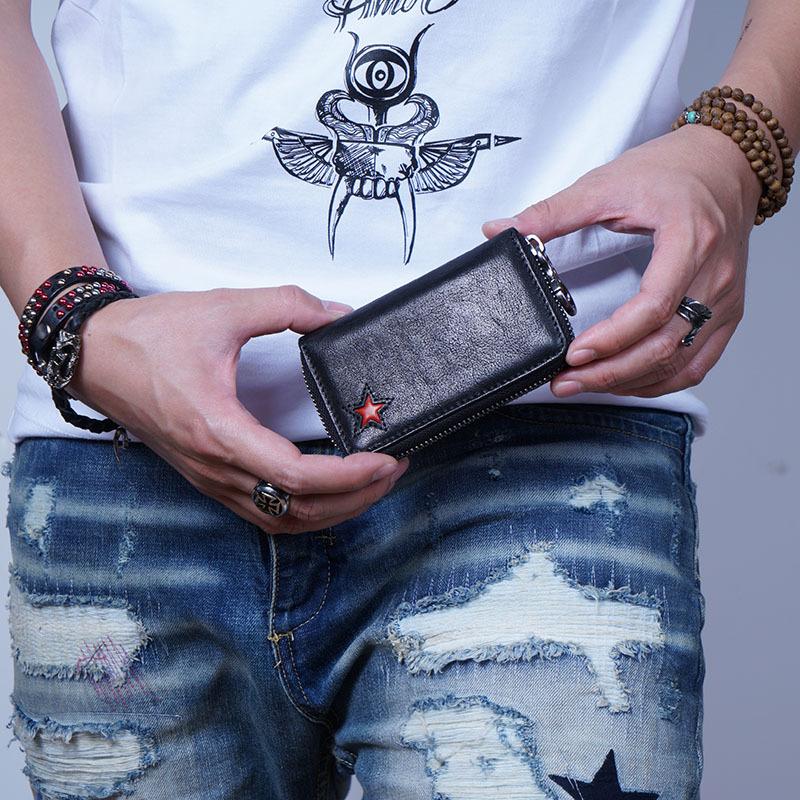 Style: Genuine Leather Mens Cool Long Leather Wallet Zipper Clutch Wallet for Men