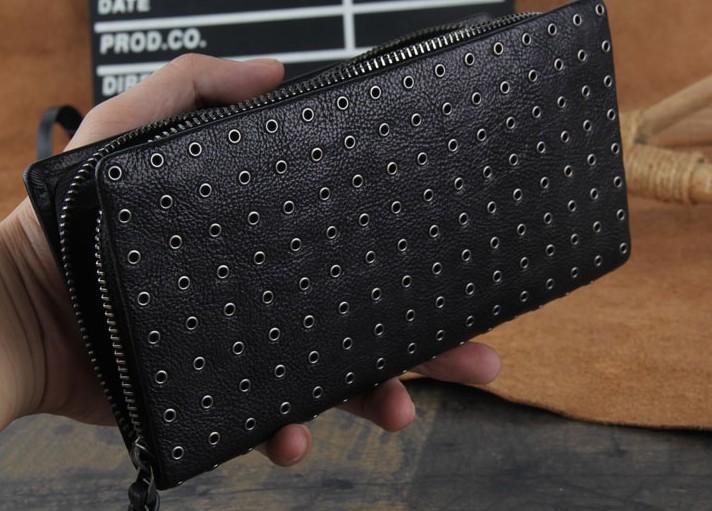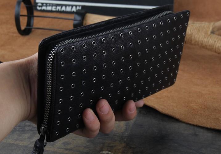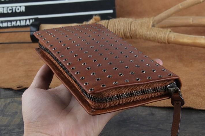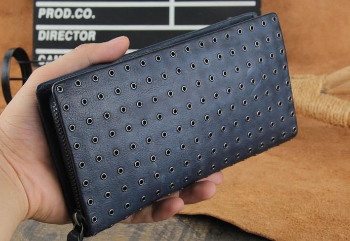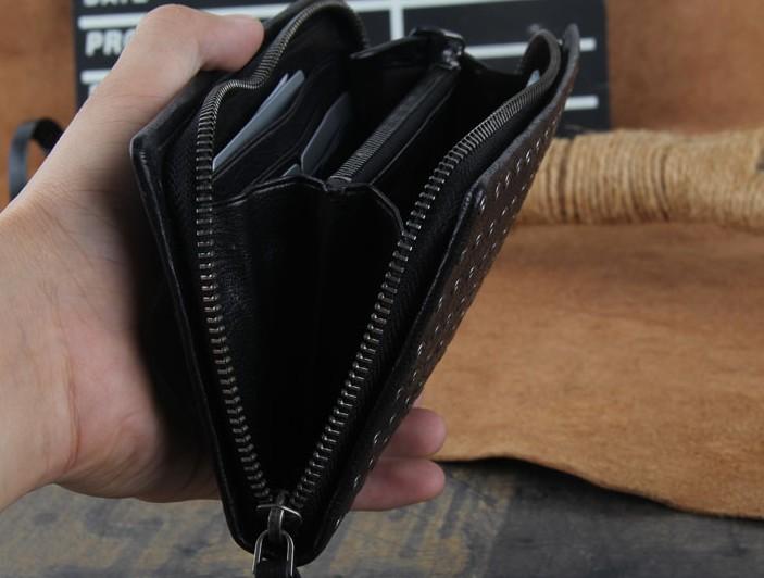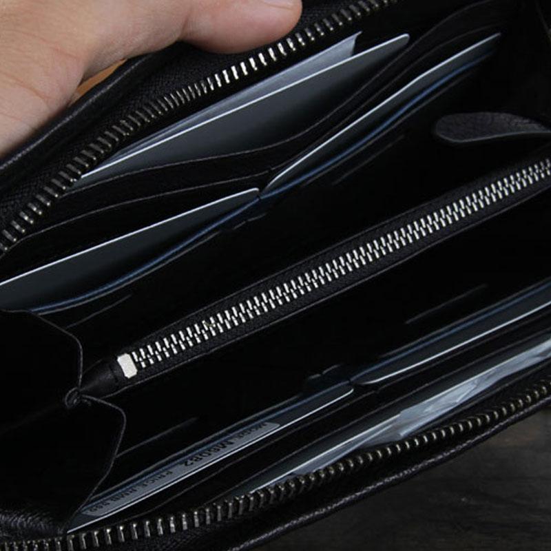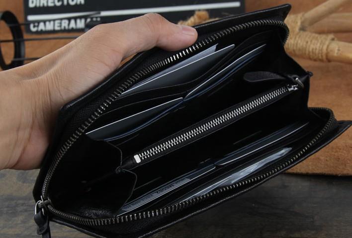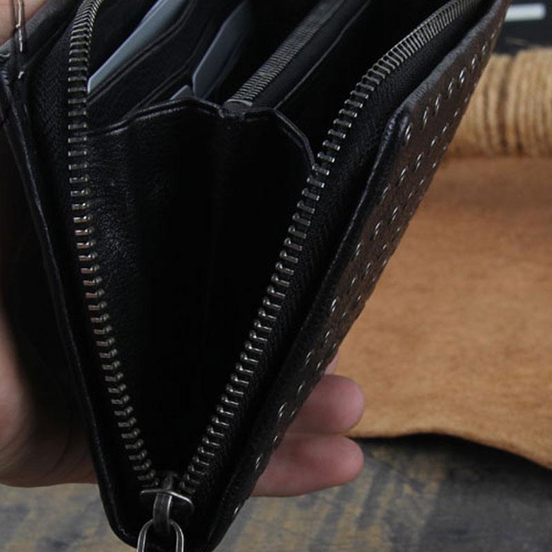 Design: Genuine Leather Mens Cool Long Leather Wallet Zipper Clutch Wallet for Men
