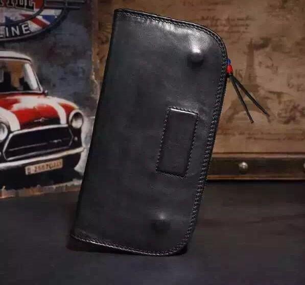 Genuine Leather Mens Cool Long Leather Wallet Zipper Clutch Wristlet Wallet for Men
