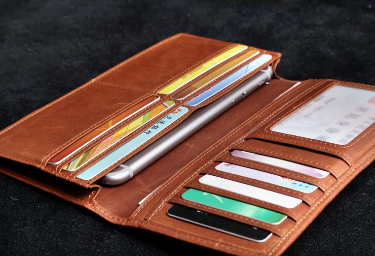 Design: Genuine Leather Mens Cool Long Leather Wallet Zipper Clutch Wallet for Men