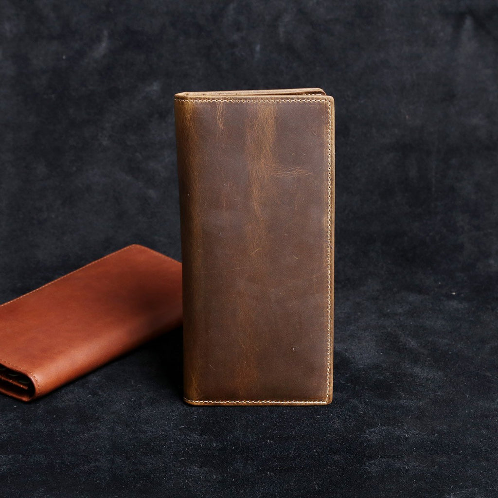 Genuine Leather Mens Cool Long Leather Wallet Zipper Clutch Wristlet Wallet for Men