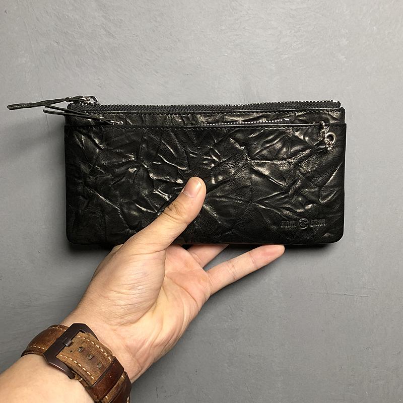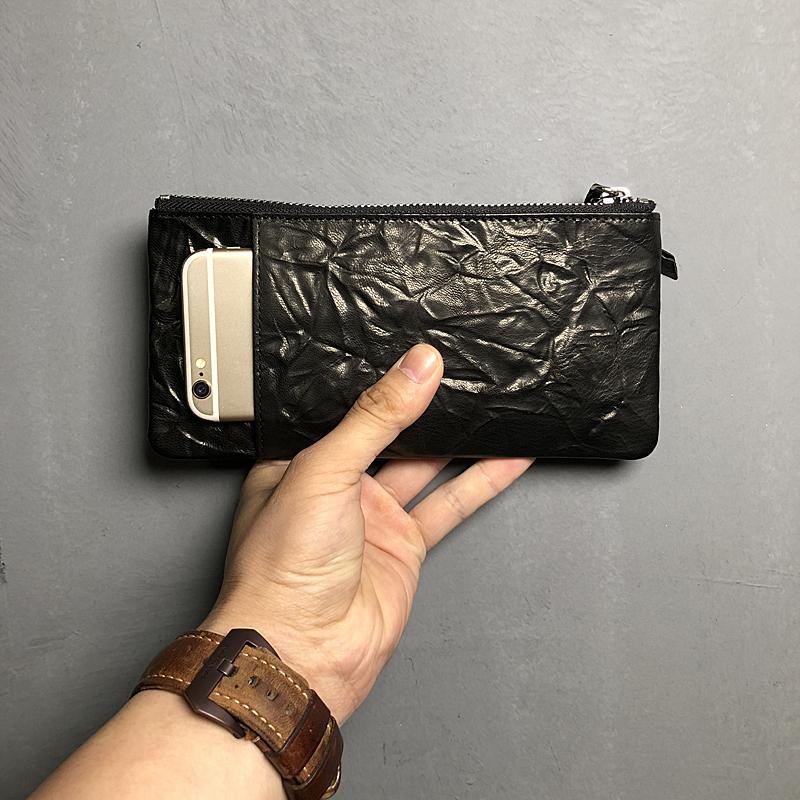 Design: Genuine Leather Mens Cool Phone Bag Wallet Long Leather Wallet Clutch Wristlet Wallet for Men