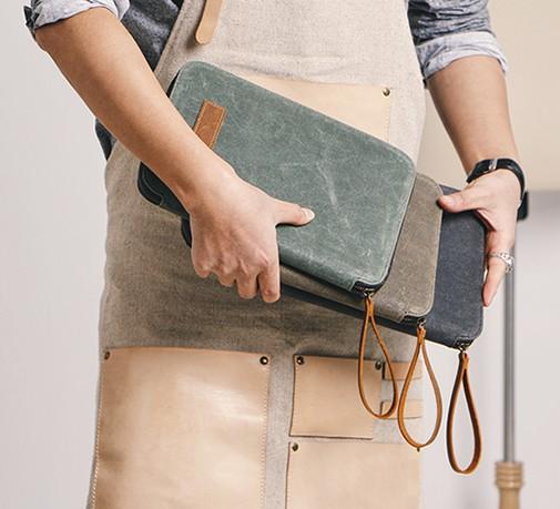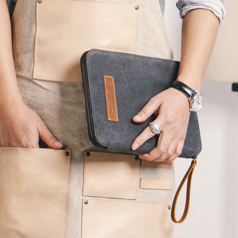 Style: Cool Canvas Leather Mens Large Clutch Wallet Zipper Wristlet Bag Purse for Men