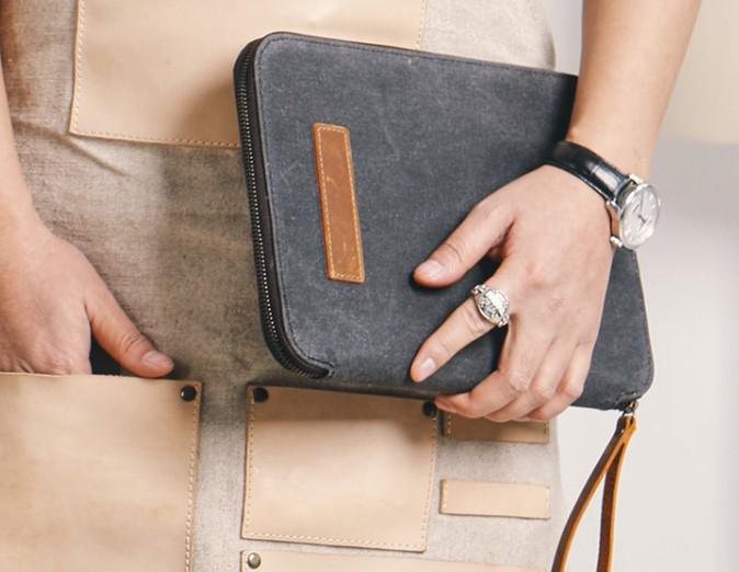 Design: Cool Canvas Leather Mens Large Clutch Wallet Zipper Wristlet Bag Purse for Men