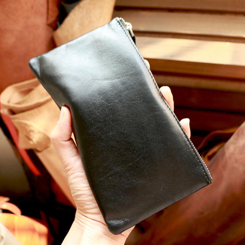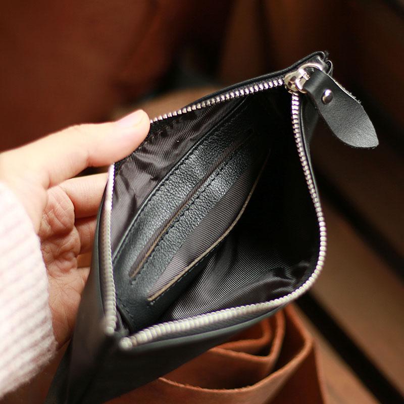 Style: Handmade Black Leather Mens Short Wallet Zipper Small Card Wallet Front Pocket Wallet For Men
