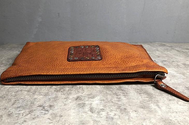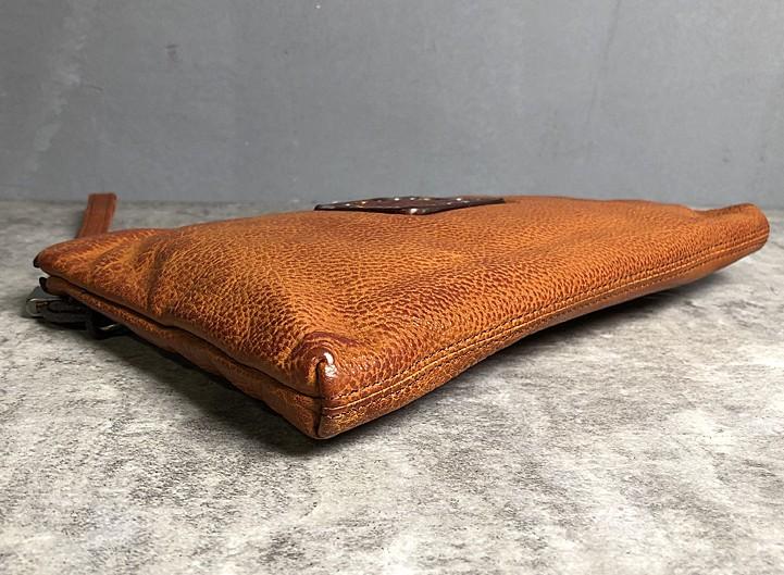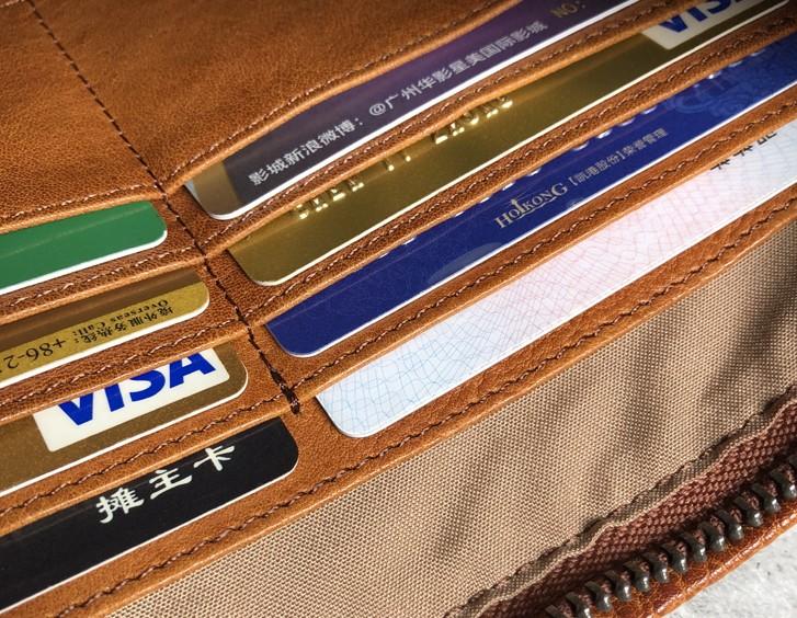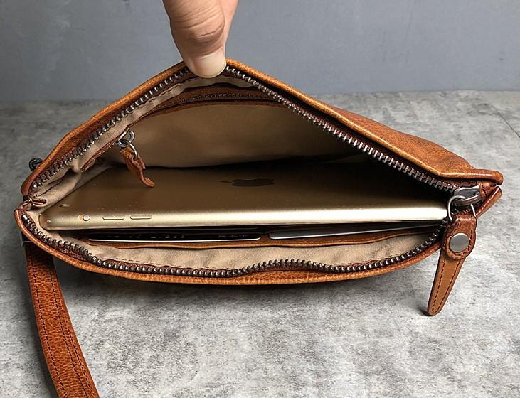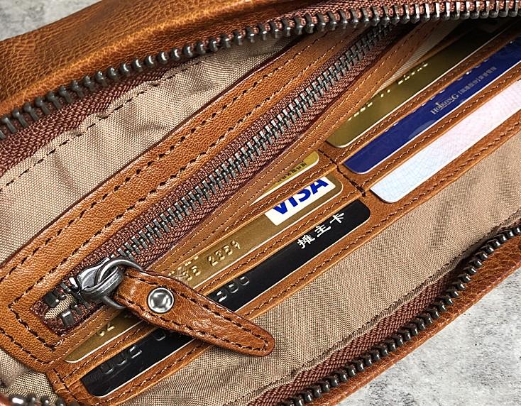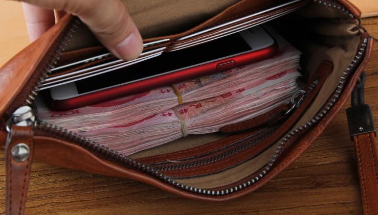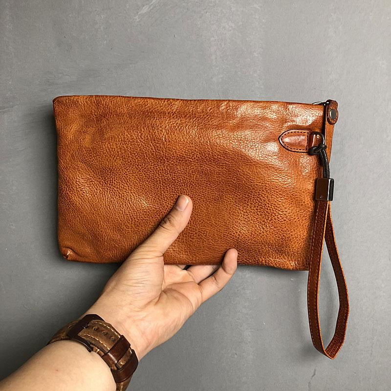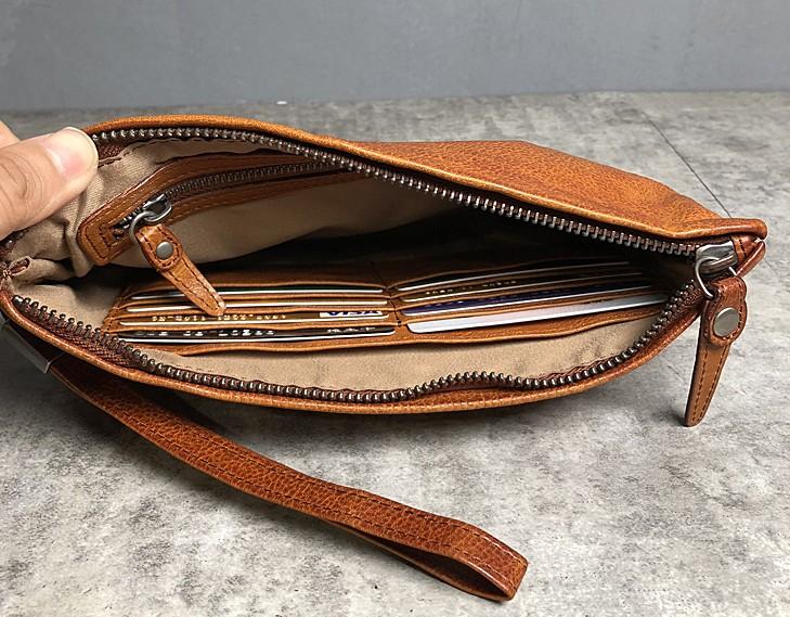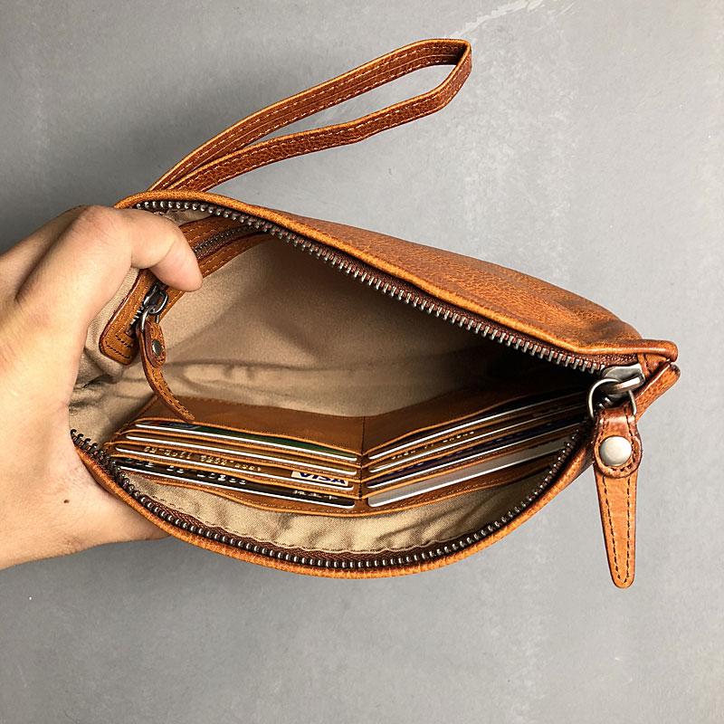 Handmade Genuine Leather Mens Clutch Cool Slim Wallet Zipper Clutch Wristlet Wallet for Men