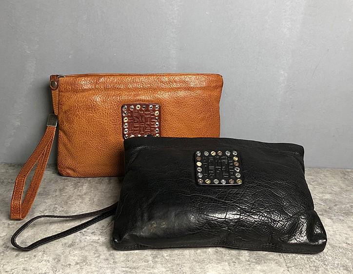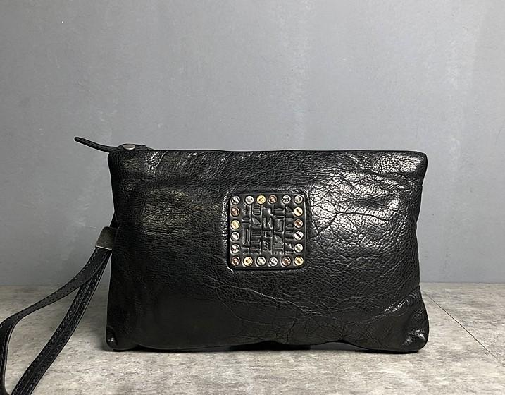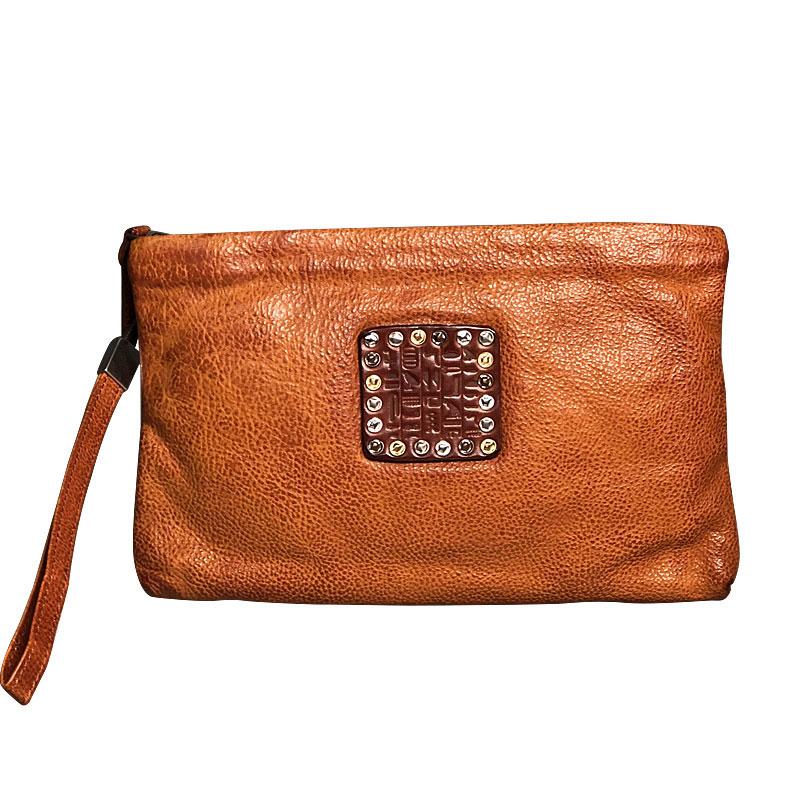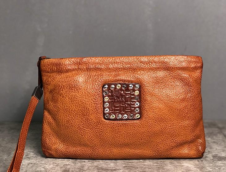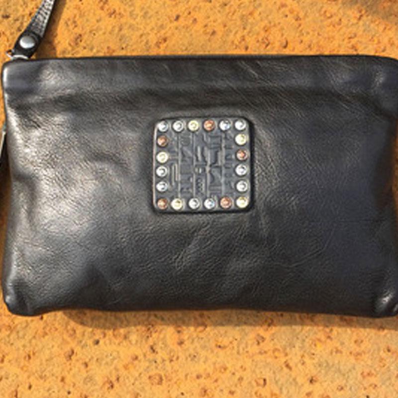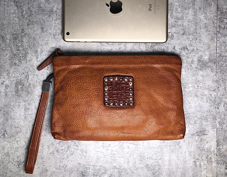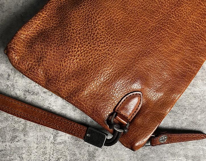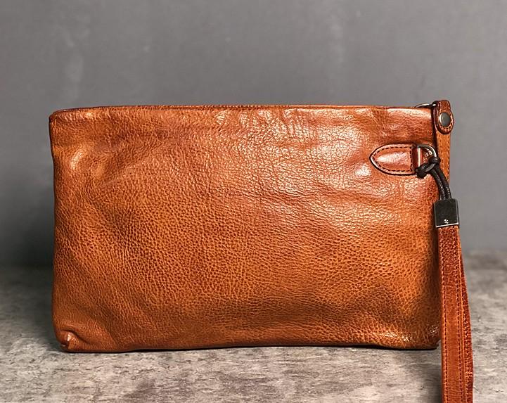 Handmade Genuine Leather Mens Clutch Cool Slim Wallet Zipper Clutch Wristlet Wallet for Men