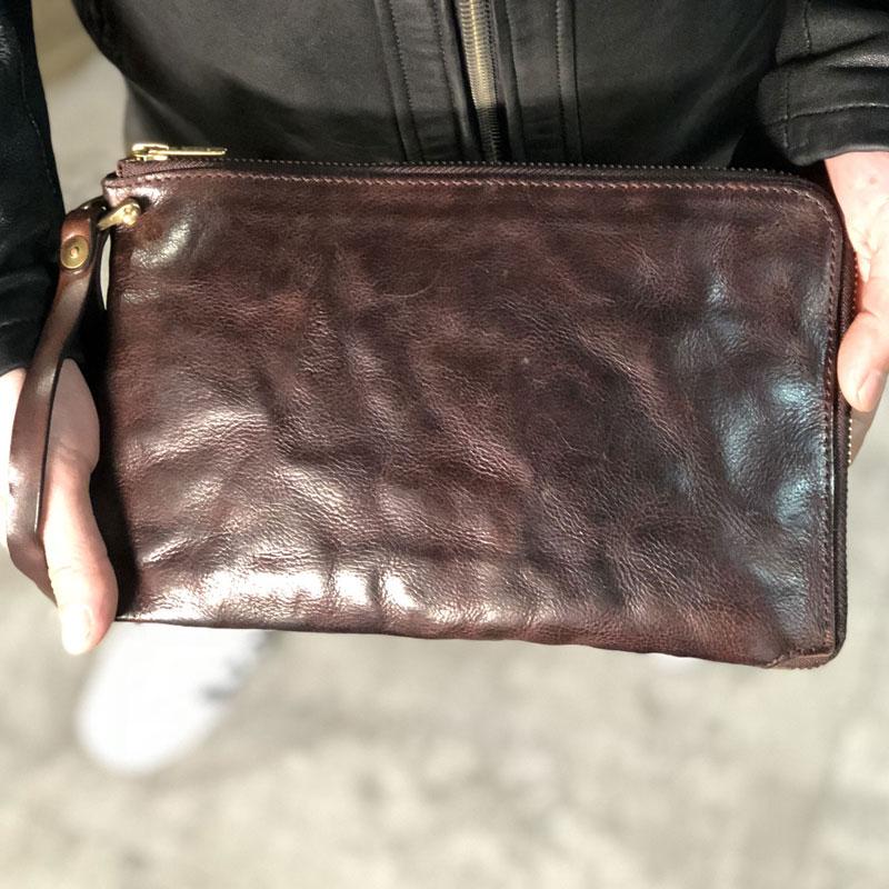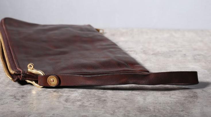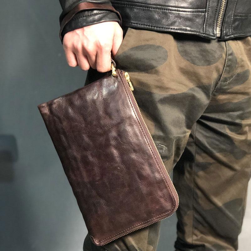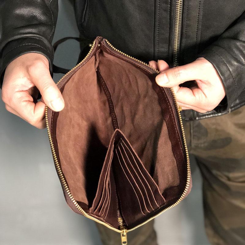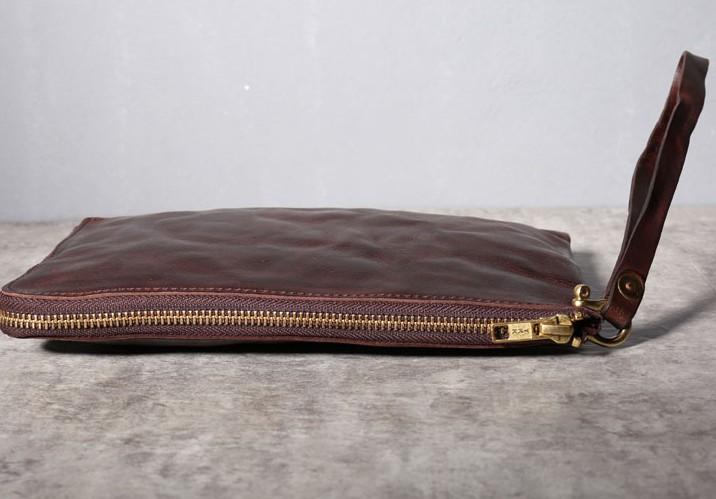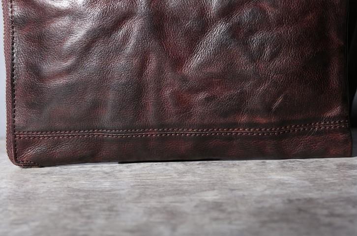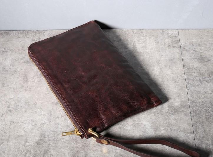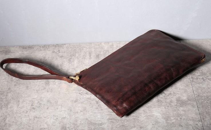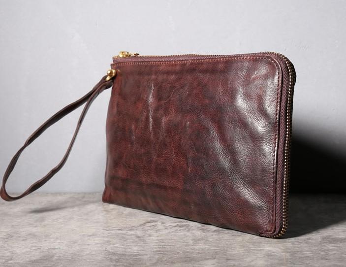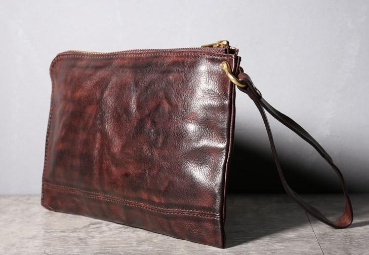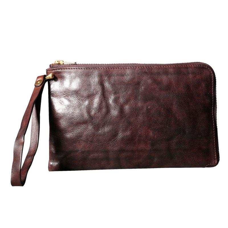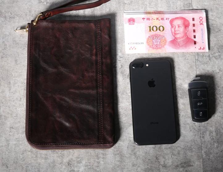 Handmade Genuine Leather Mens Clutch Cool Slim Wallet Zipper Clutch Wristlet Wallet for Men
