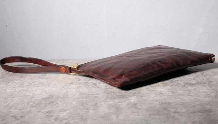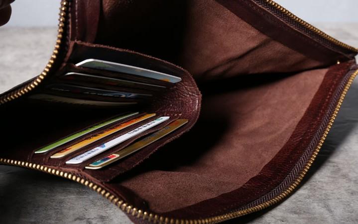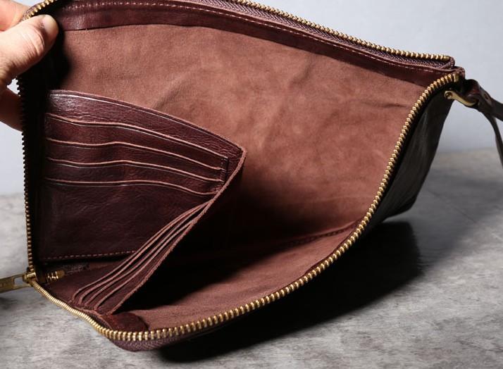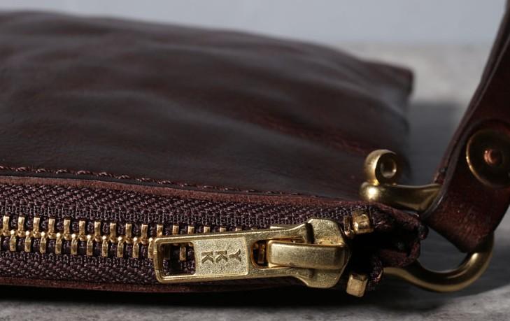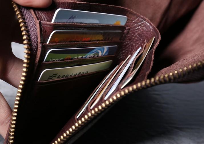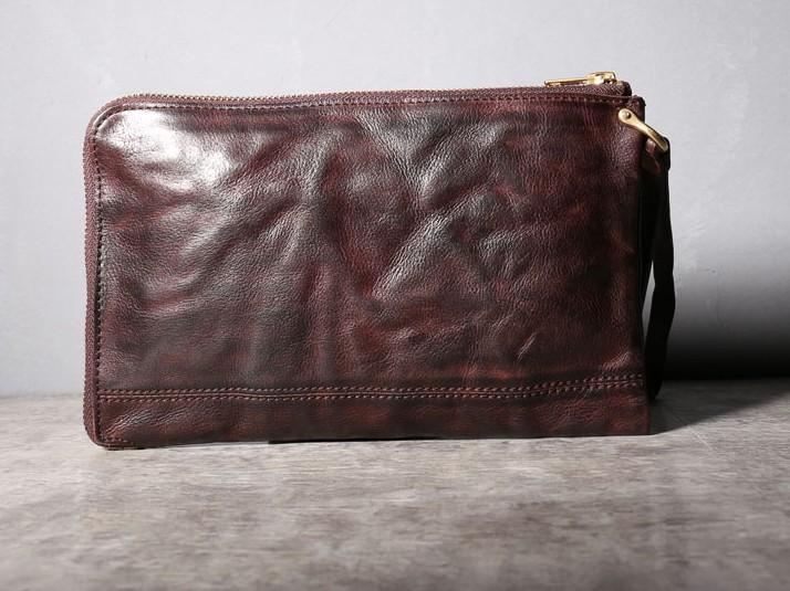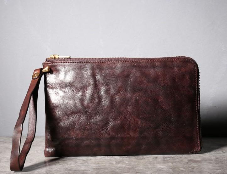 Design: Handmade Genuine Leather Mens Clutch Cool Slim Wallet Zipper Clutch Wristlet Wallet for Men