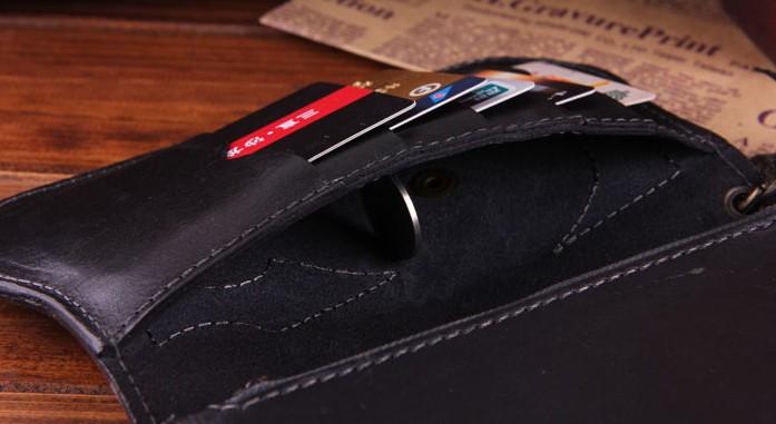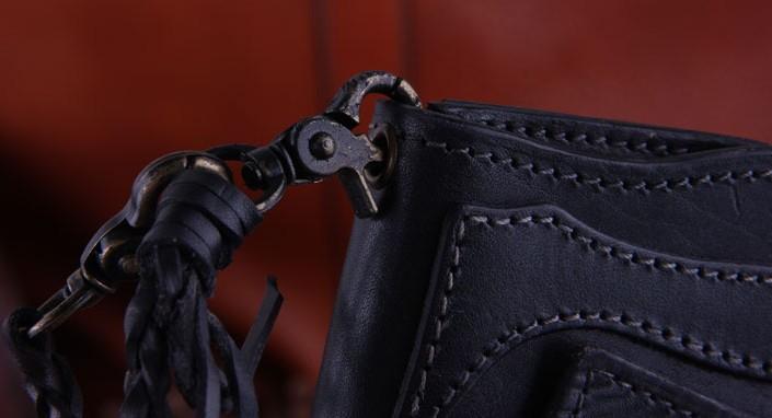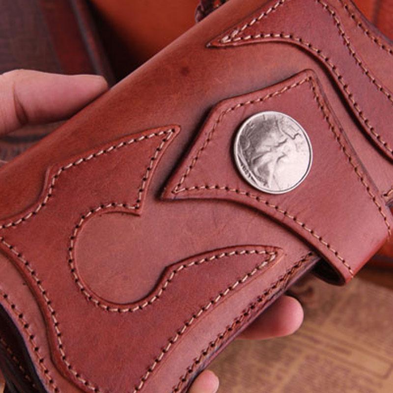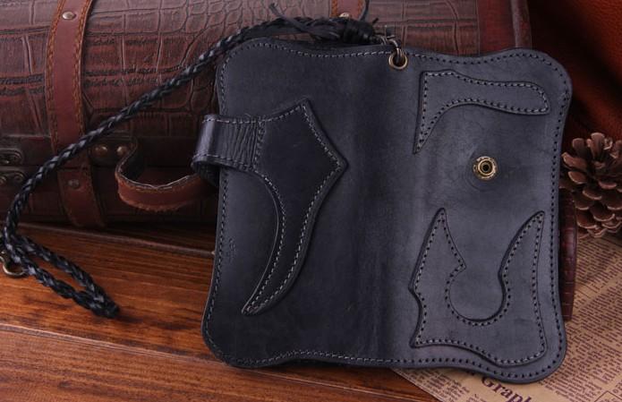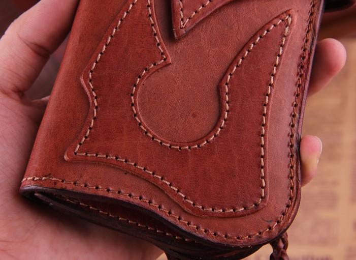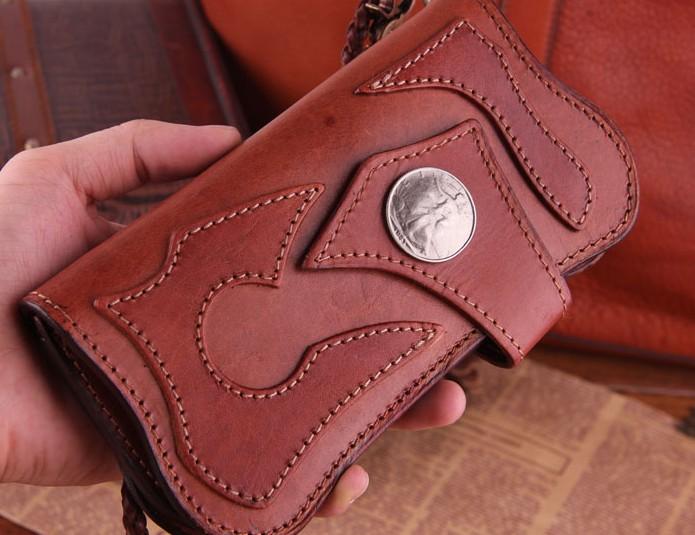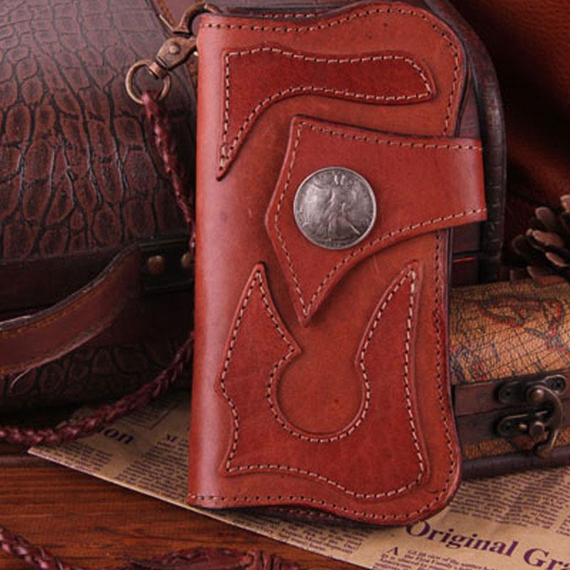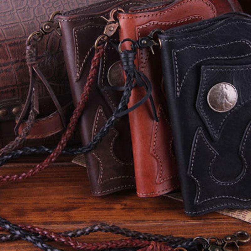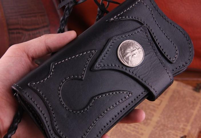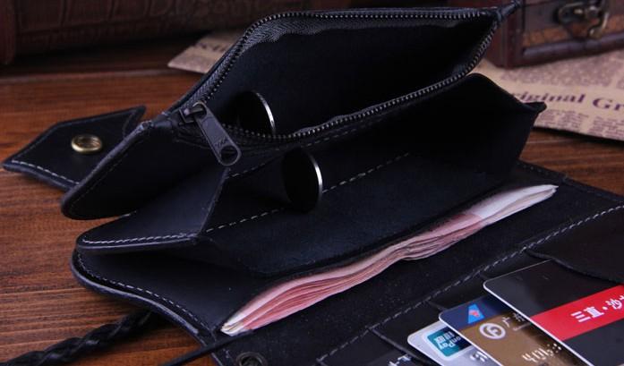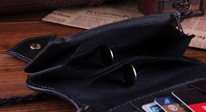 Design: Handmade Genuine Leather Mens Cool Biker Chain Wallet Long Leather Wallet Slim Clutch Wristlet Wallet for Men