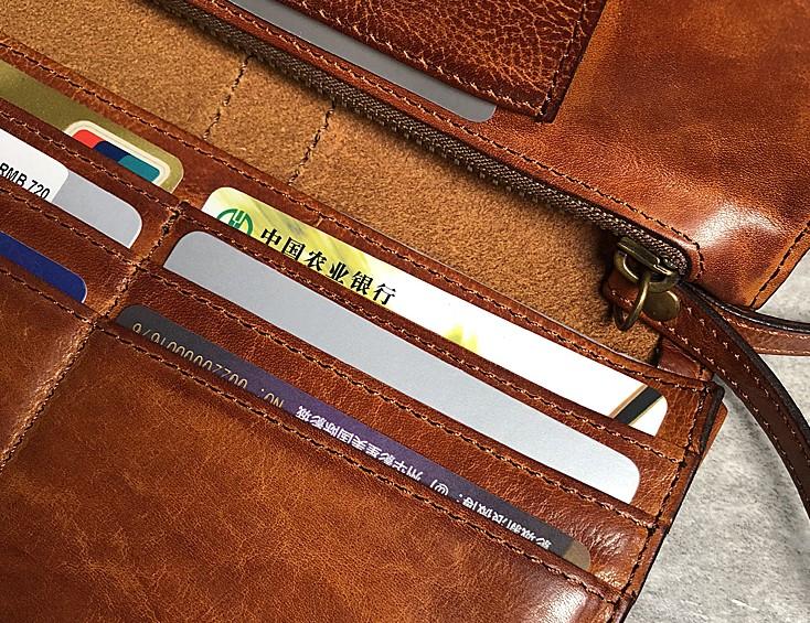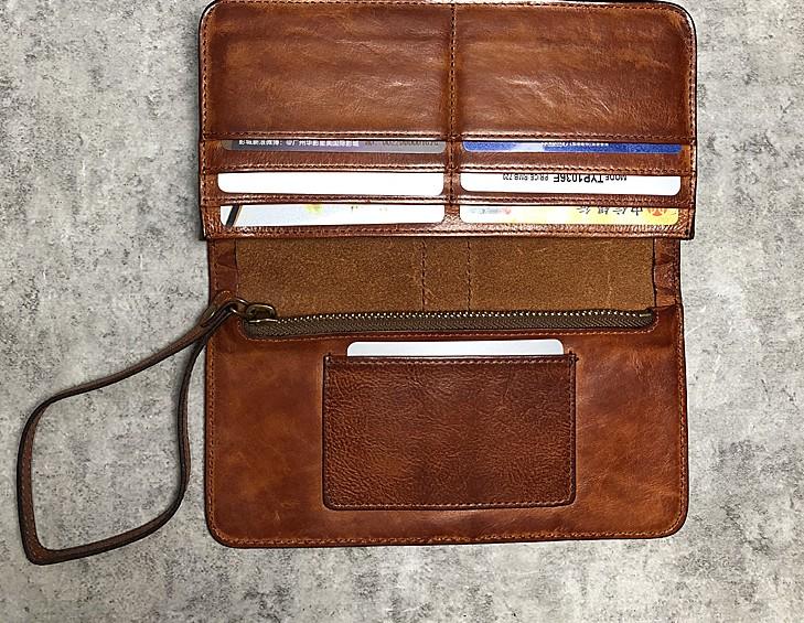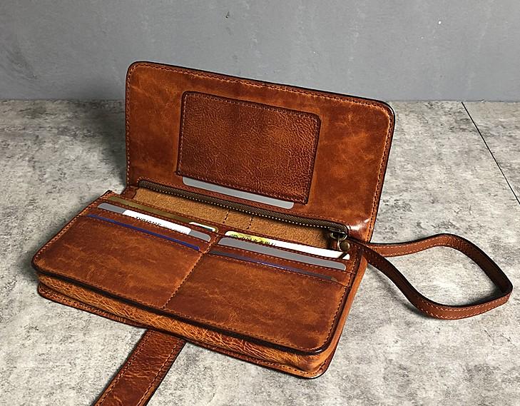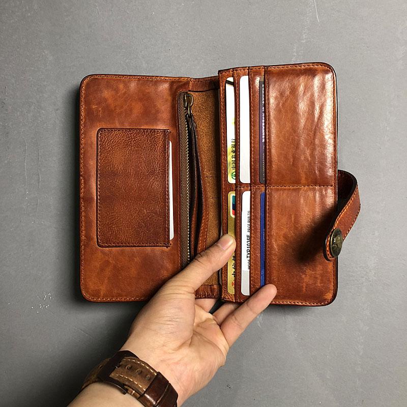 Style: Handmade Genuine Leather Mens Cool Long Leather Wallet Biker Wallet Zipper Clutch Wristlet Wallet for Men