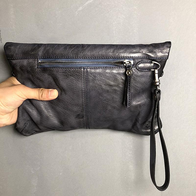 Design: Handmade Genuine Leather Women Mens Clutch Cool Slim Wallet Zipper Clutch Wristlet Wallet for Men