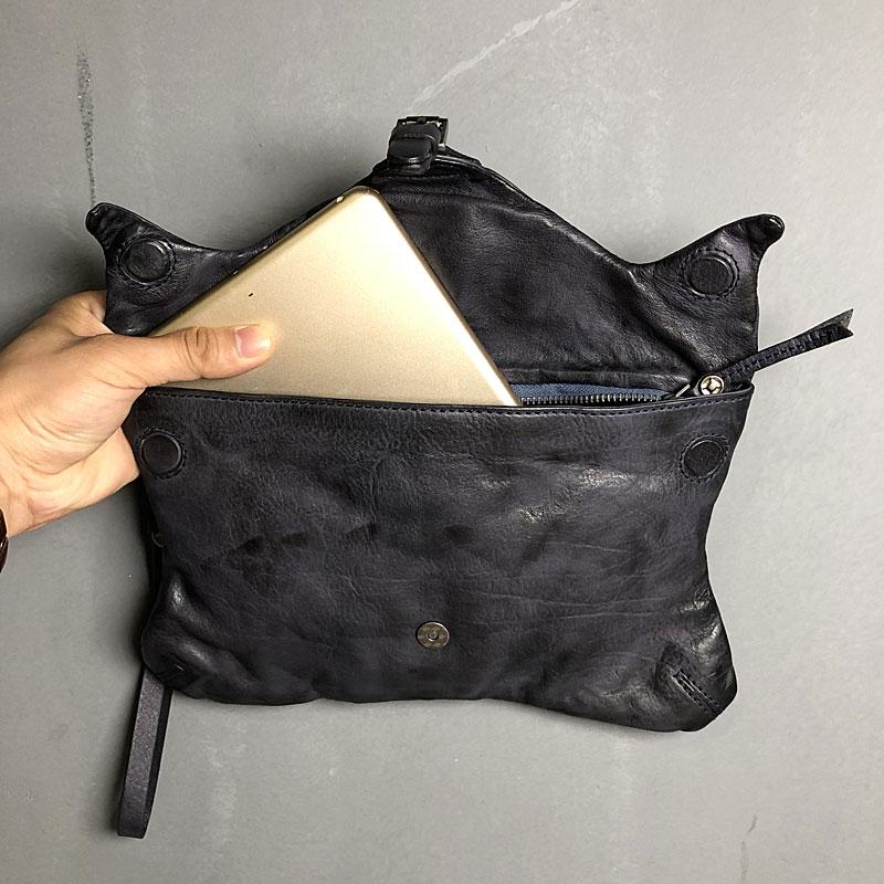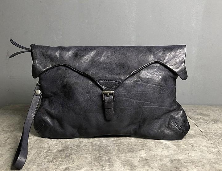 Handmade Genuine Leather Women Mens Clutch Cool Slim Wallet Zipper Clutch Wristlet Wallet for Men