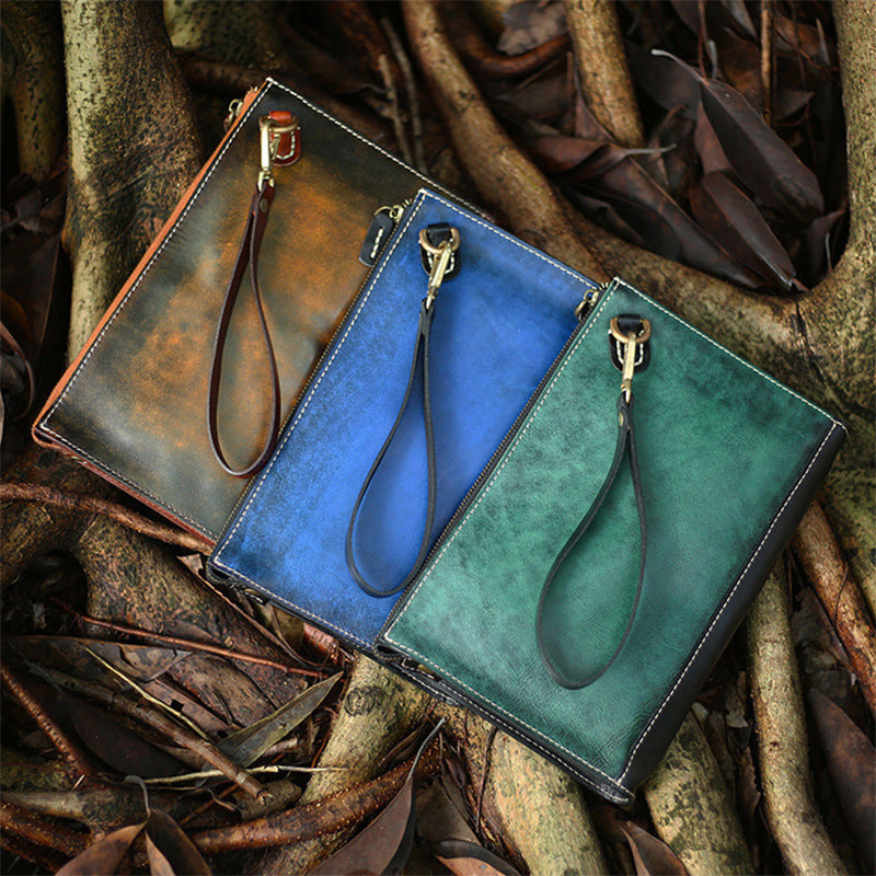 Green Leather Clutch Bag for Men Leather Wristlet Bag for Men Leather Clutch