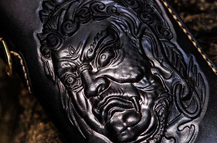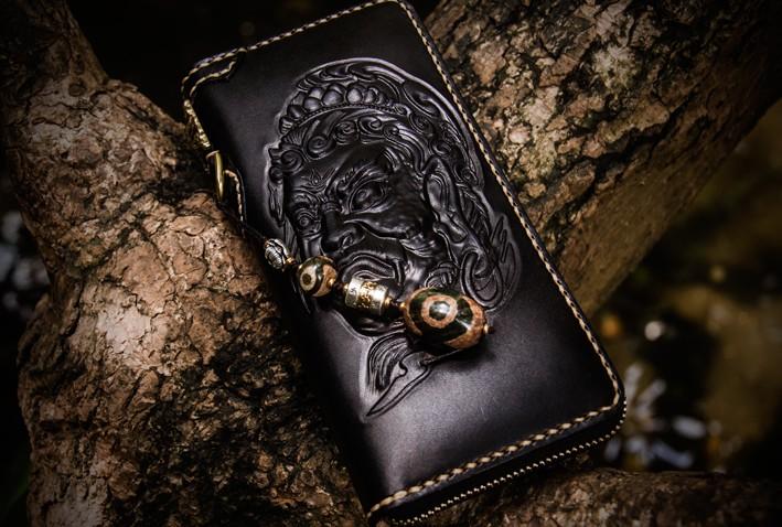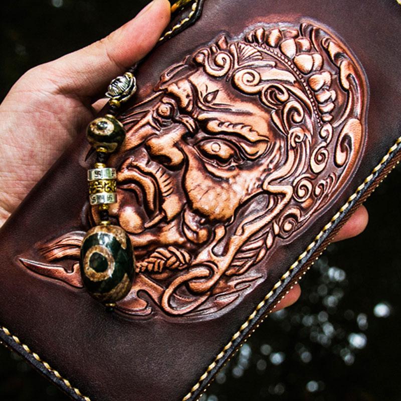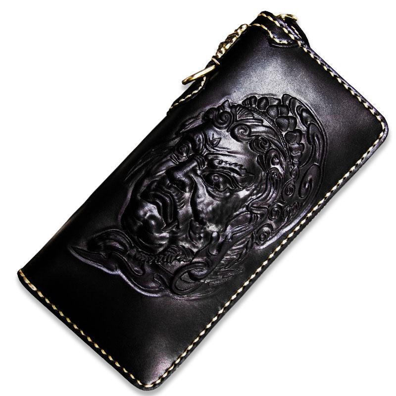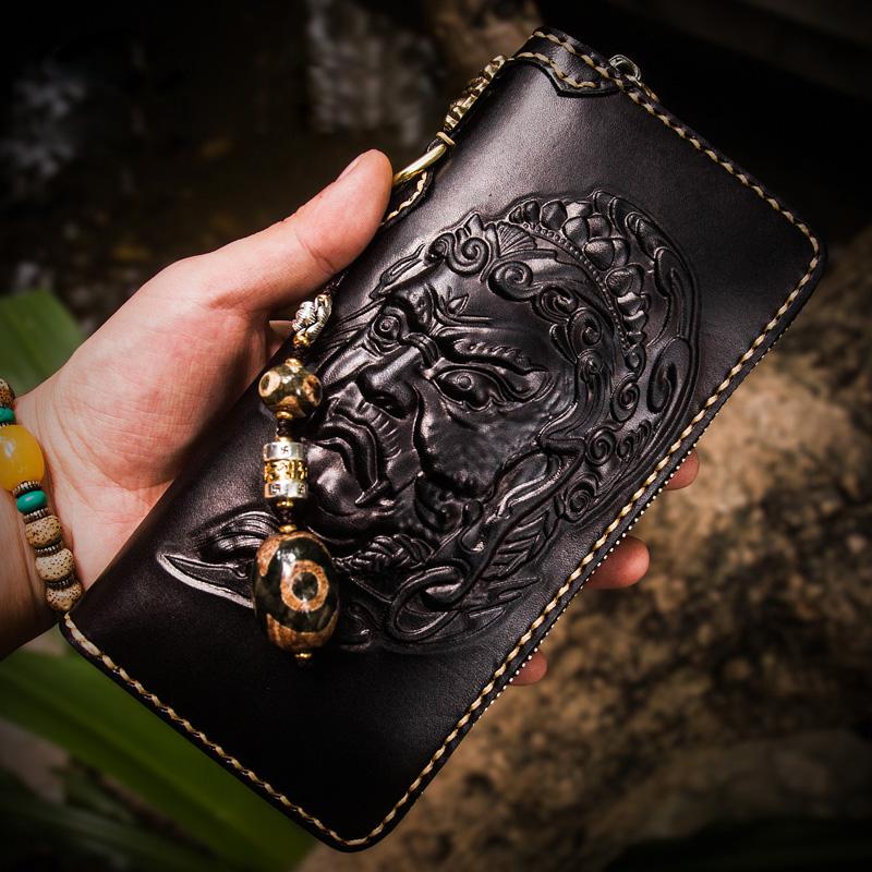 Design: Handmade Leather Acalanatha Mens Chain Biker Wallet Cool Leather Wallet Long Clutch Wallets for Men