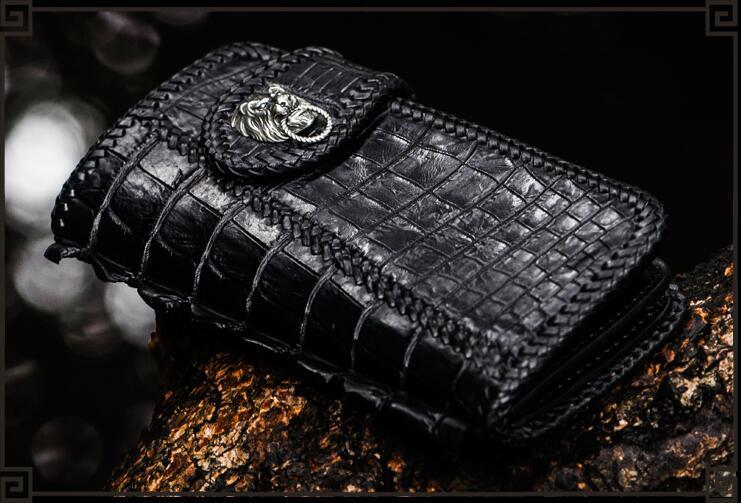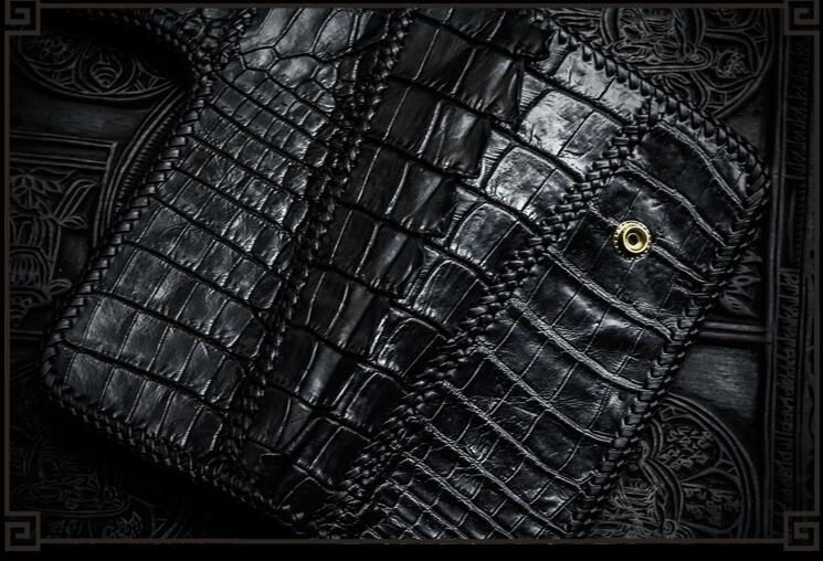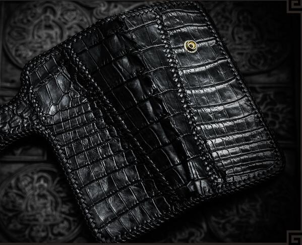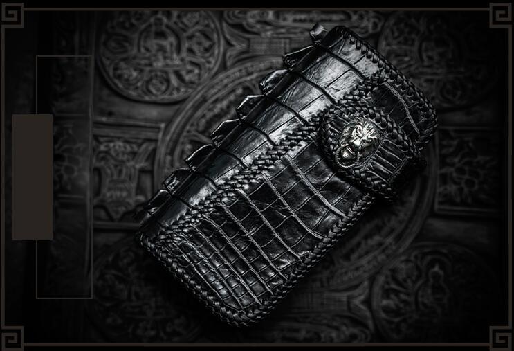 Design: Handmade Leather Black Mens Chain Biker Wallet Cool Leather Wallet Long Clutch Wallets for Men