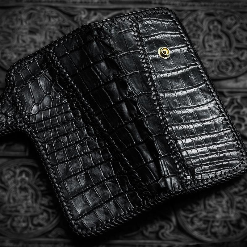 Style: Handmade Leather Black Mens Chain Biker Wallet Cool Leather Wallet Long Clutch Wallets for Men