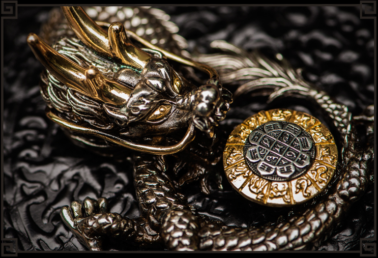 Design:Handmade Leather Chinese Dragon Tooled Mens billfold Wallet Cool Chain Wallet Biker Wallet for Men