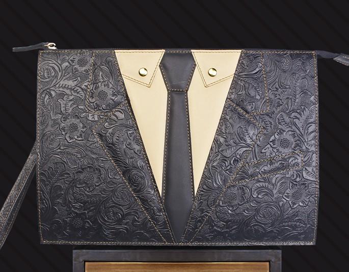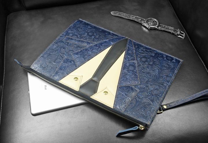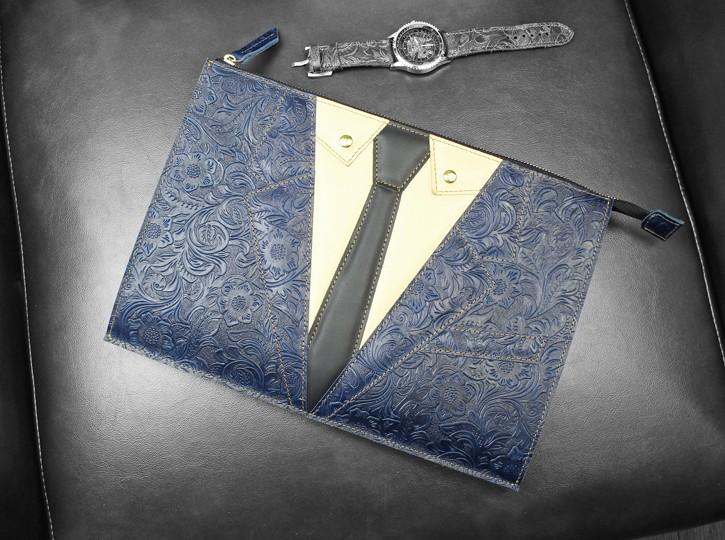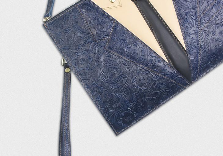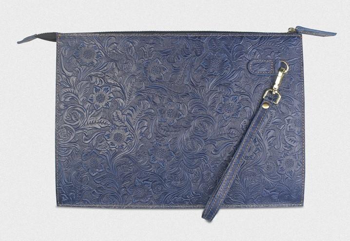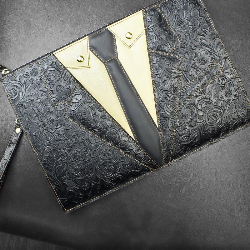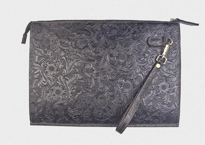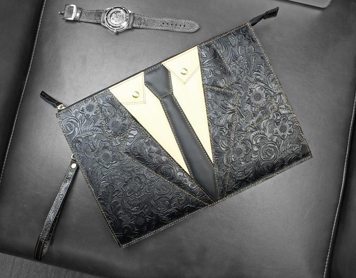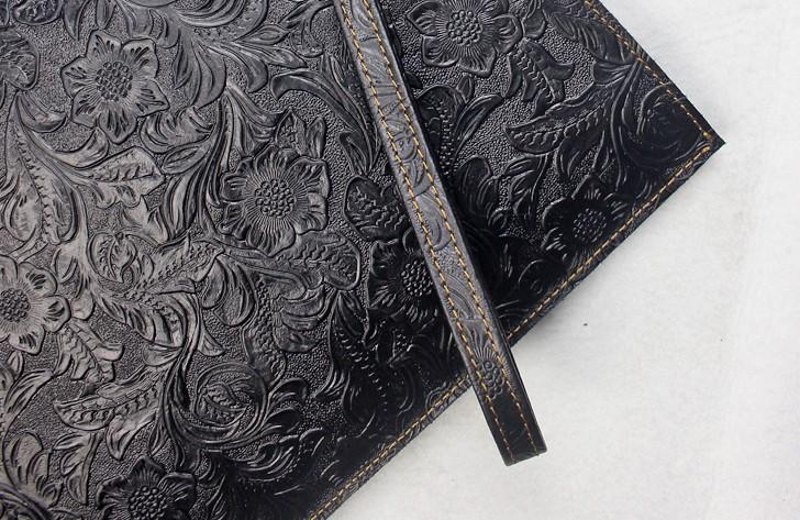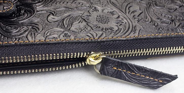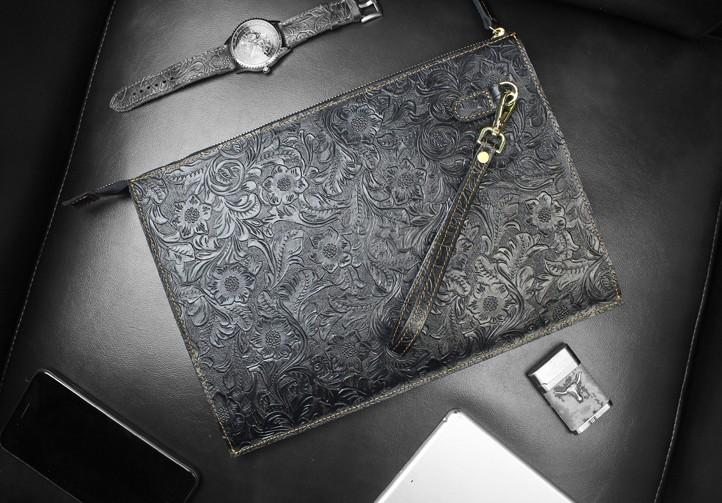 Design: Handmade Leather Floral Tooled Mens Clutch Cool Slim Wallet Zipper Clutch Wristlet Wallet for Men