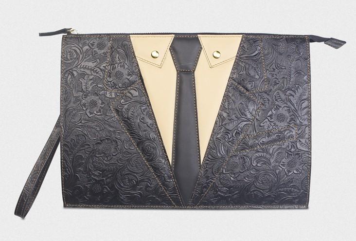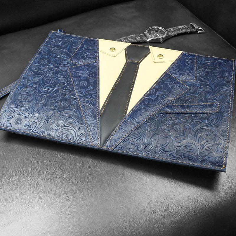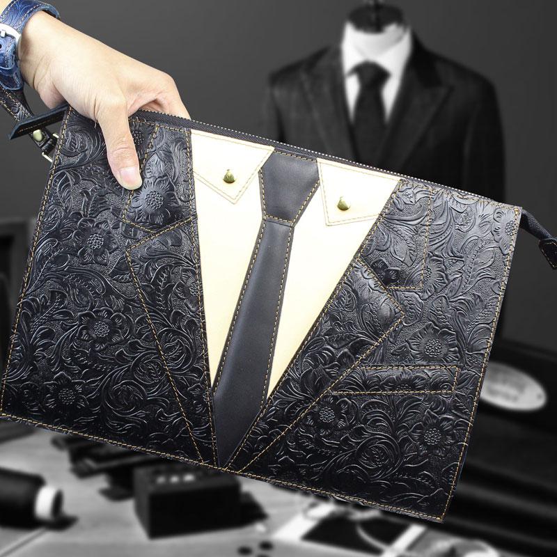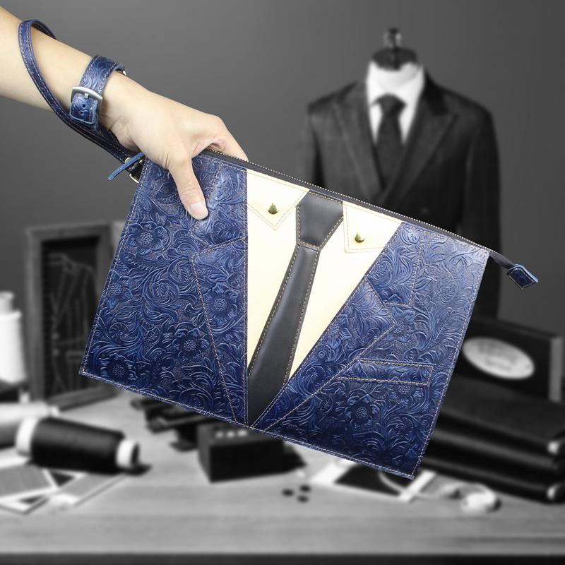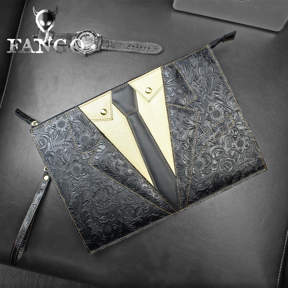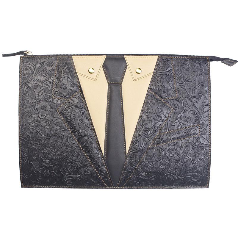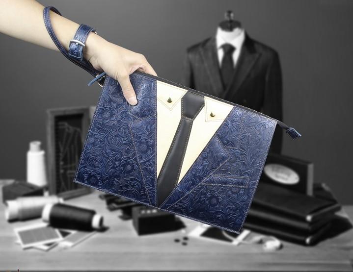 Design: Handmade Leather Floral Tooled Mens Clutch Cool Slim Wallet Zipper Clutch Wristlet Wallet for Men
