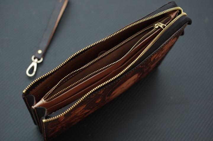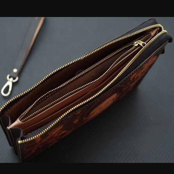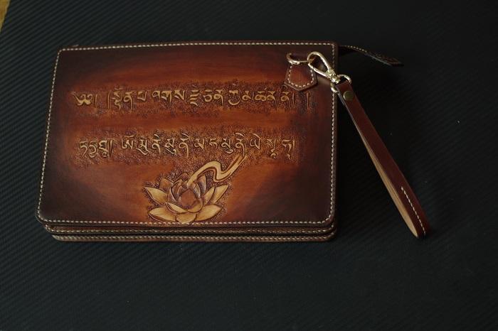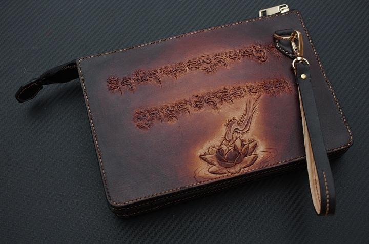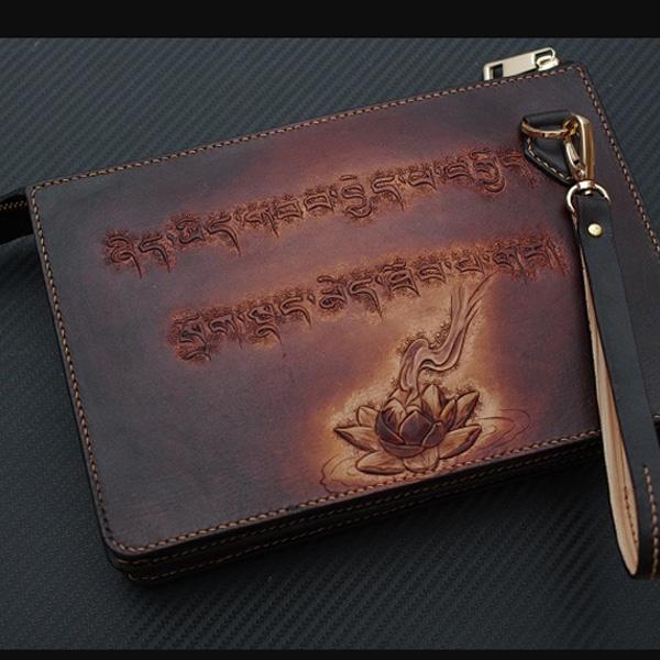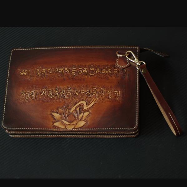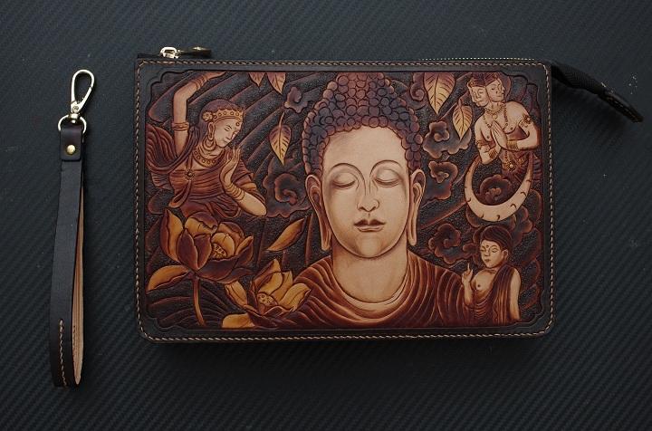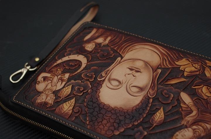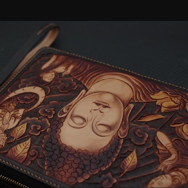 Design: Handmade Leather Men Tooled Sakyamuni Buddha Cool Leather Wallet Long Phone Clutch Wallets for Men