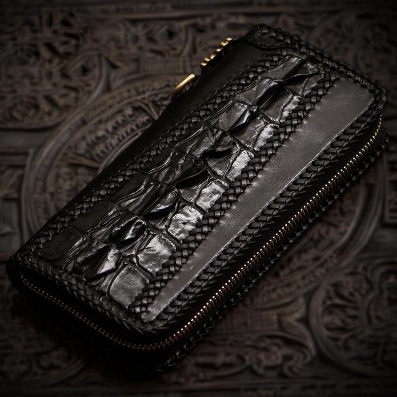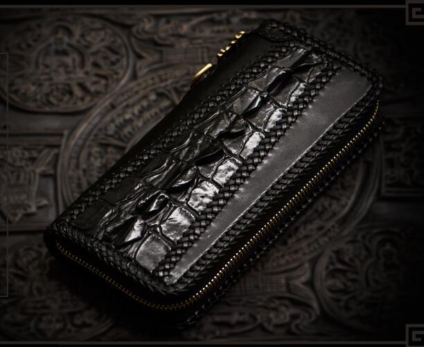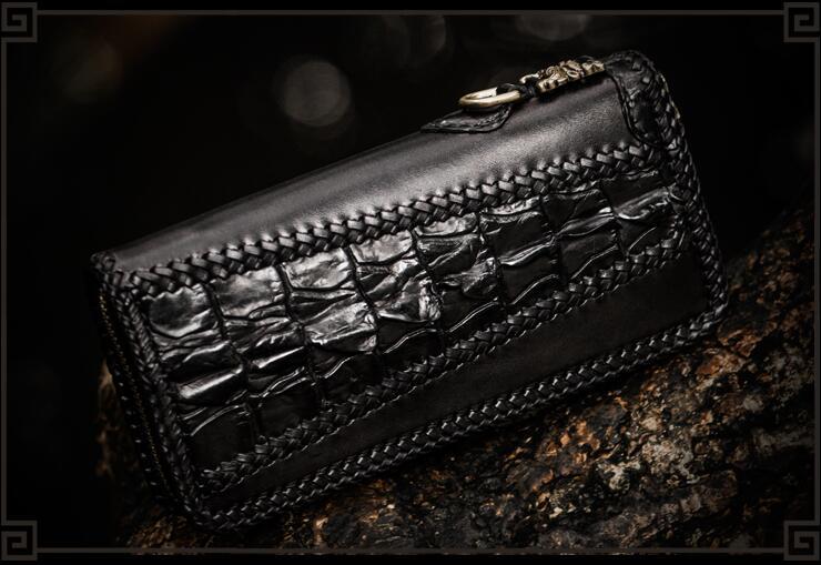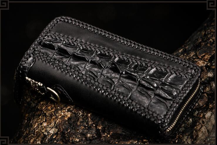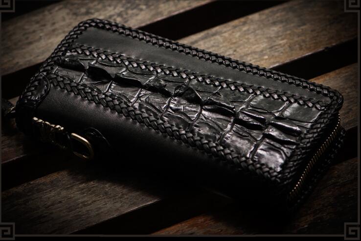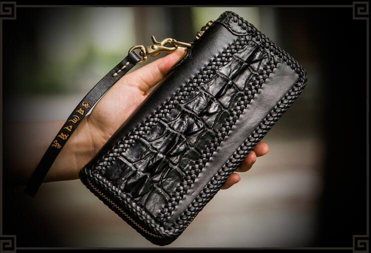 Design: Handmade Leather Tibetan Mens Chain Biker Wallet Cool Leather Wallet Long Clutch Wallets for Men