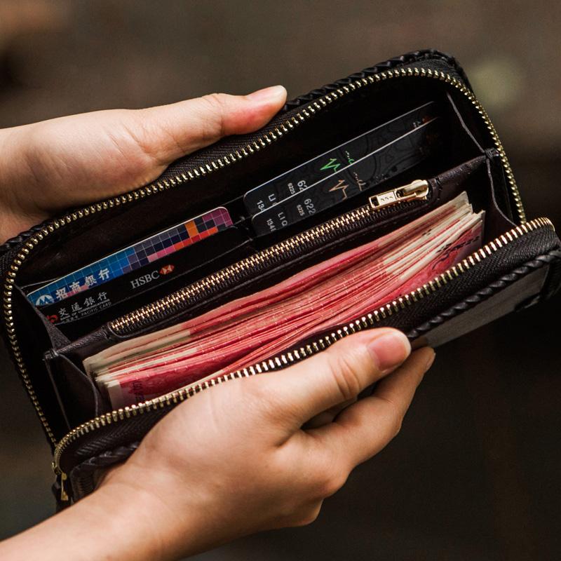 Slots: 2 full size bill slot, 8 card holders, 1 zipper slot