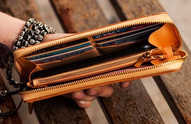 Design: Handmade Leather Mens Chain Biker Wallet Cool Leather Wallet Long Clutch Wallets for Men