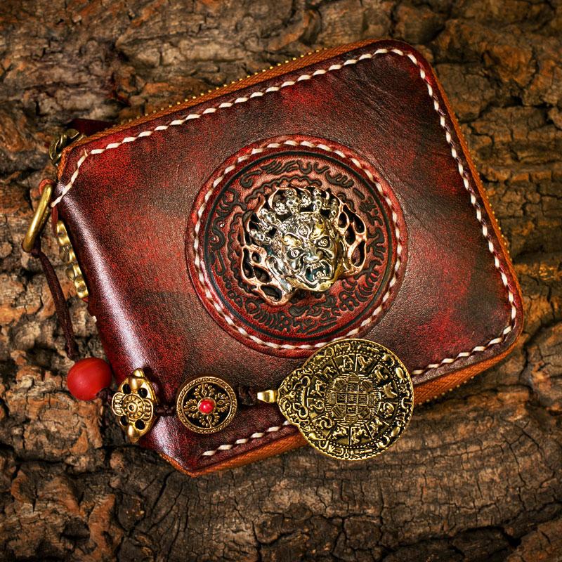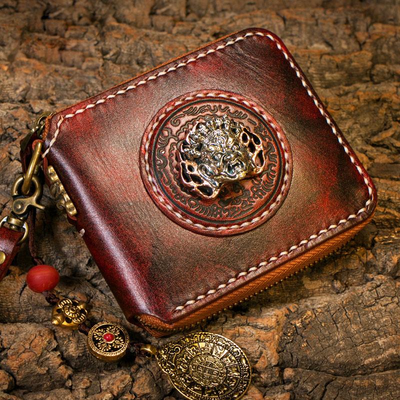 Design: Handmade Leather Mens Chain Biker Wallet Cool Leather Wallet Small Wallets for Men