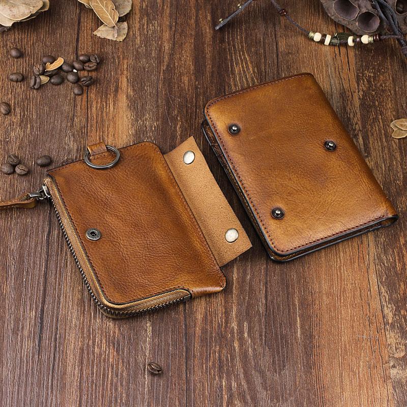 Design: Handmade Leather Mens Chain Biker Wallet Cool Leather Wallet Trifold billfold Wallets