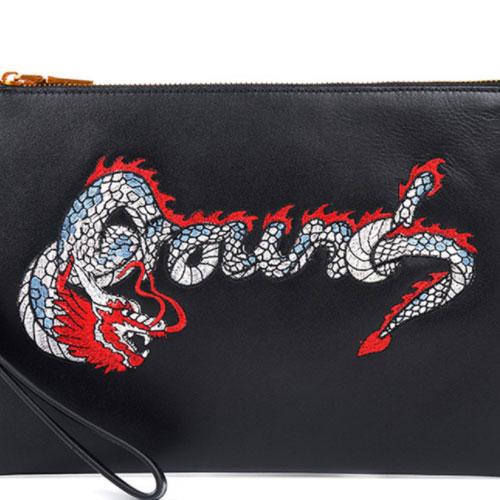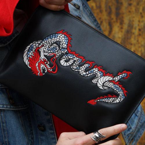 Design: Handmade Leather Mens Chinese Dragon Clutch Cool Slim Wallet Zipper Clutch Wristlet Wallet for Men