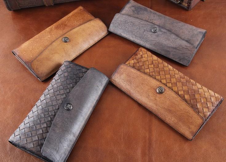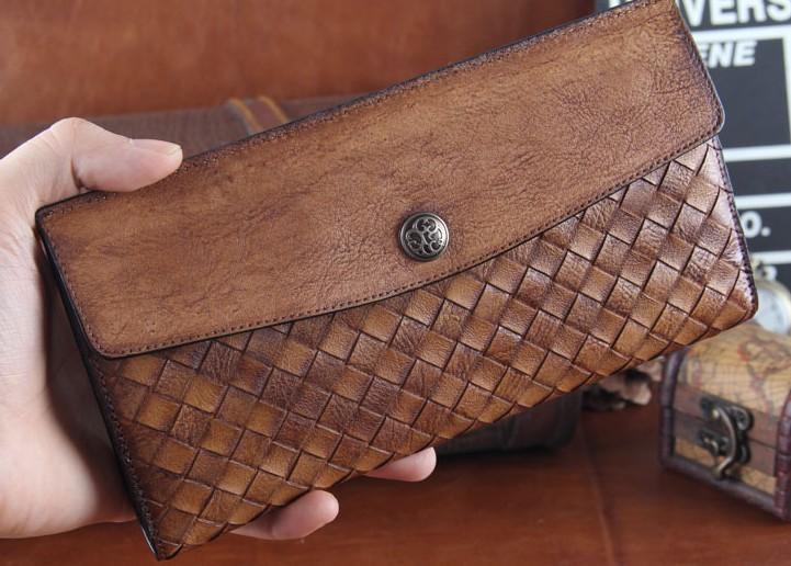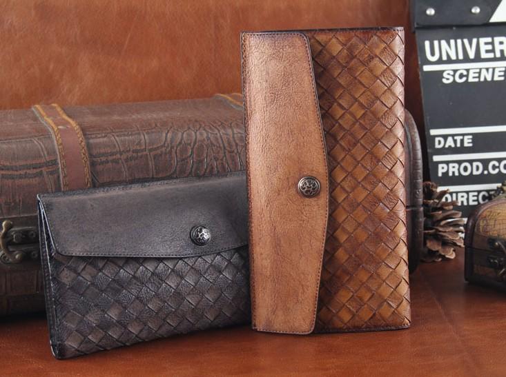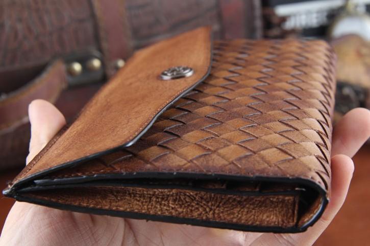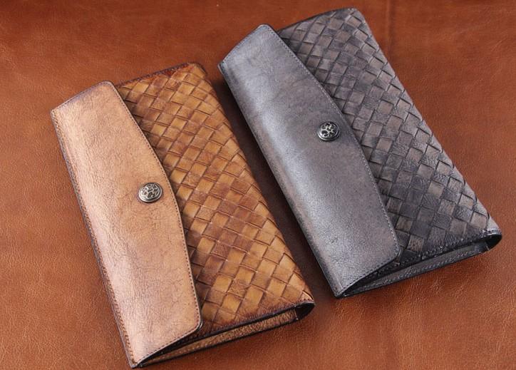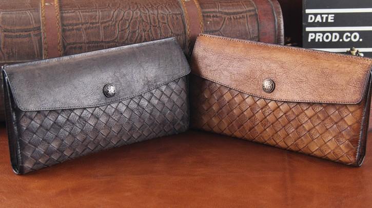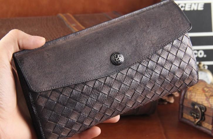 Design: Handmade Leather Mens Clutch Cool Braided Wallet Clutch Wristlet Wallet for Men