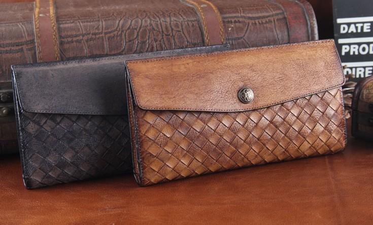 Style: Handmade Leather Mens Clutch Cool Braided Wallet Clutch Wristlet Wallet for Men
