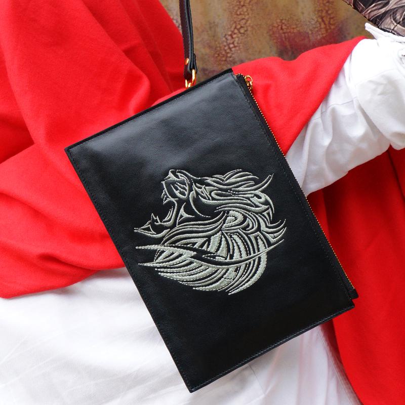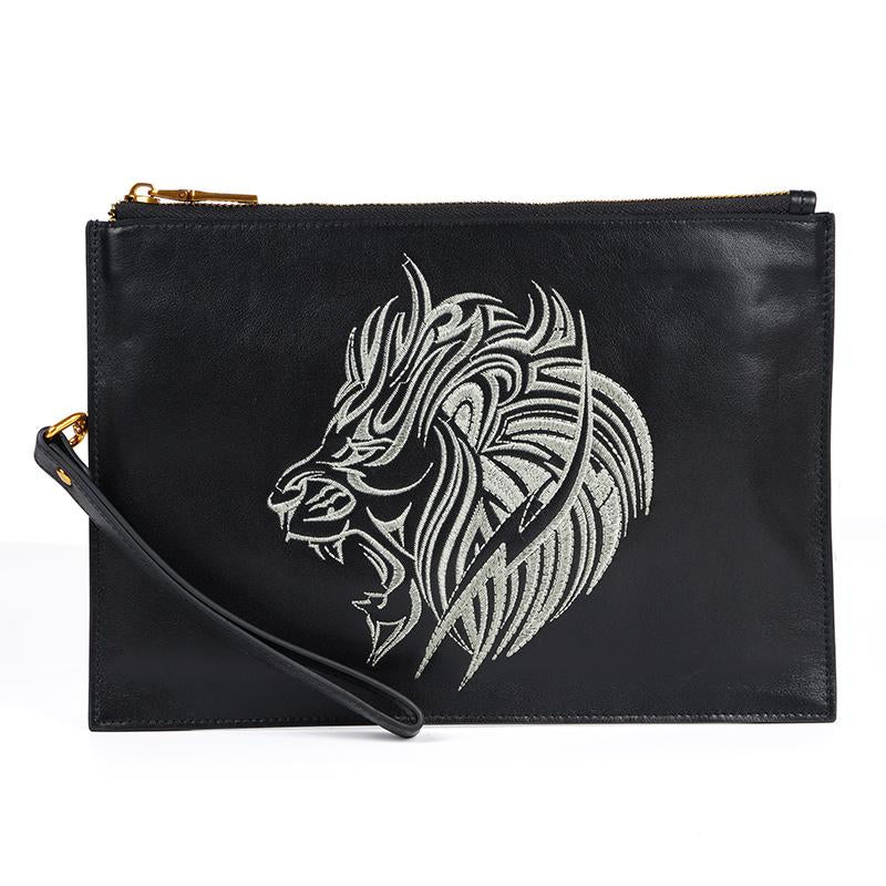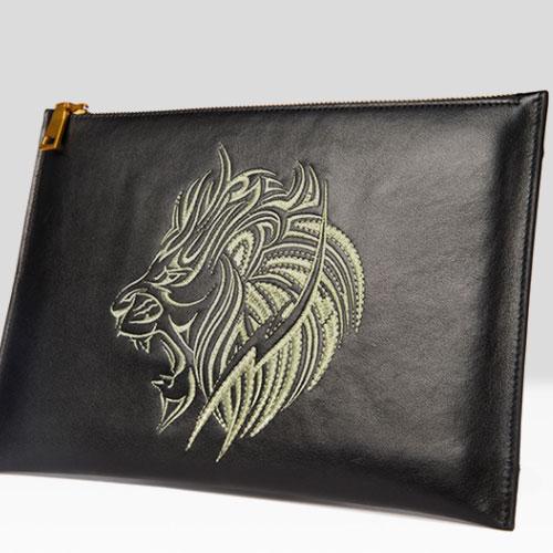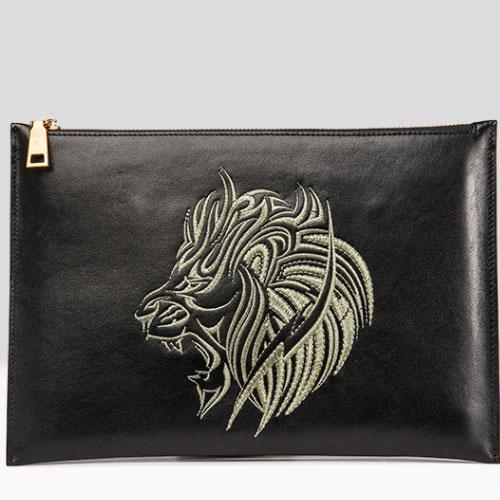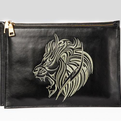 Design: Handmade Leather Mens Clutch Cool Slim Lion Wallet Zipper Clutch Wristlet Wallet for Men