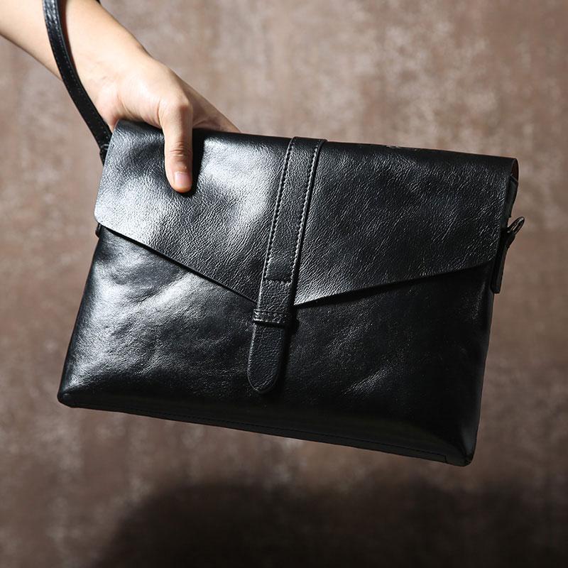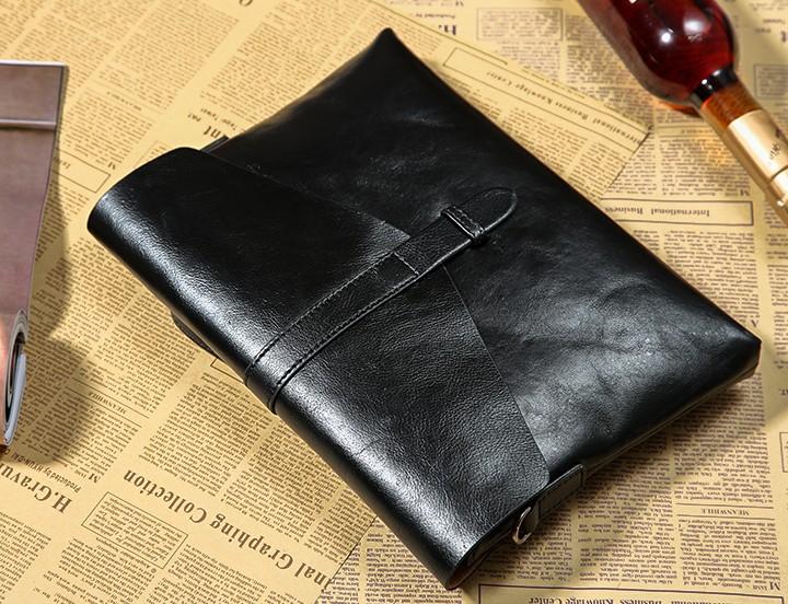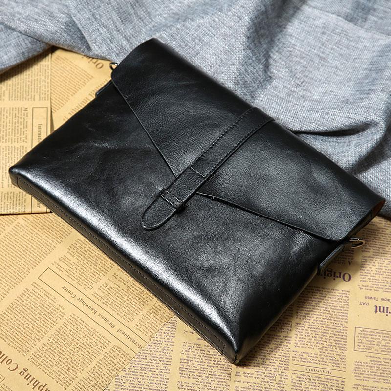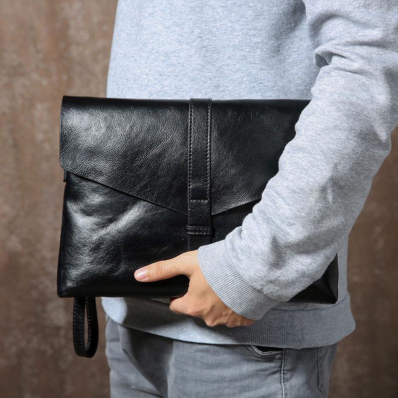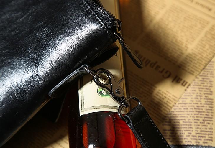 Handmade Leather Mens Clutch Cool Slim Wallet Zipper Clutch Wristlet Bag Wallet for Men