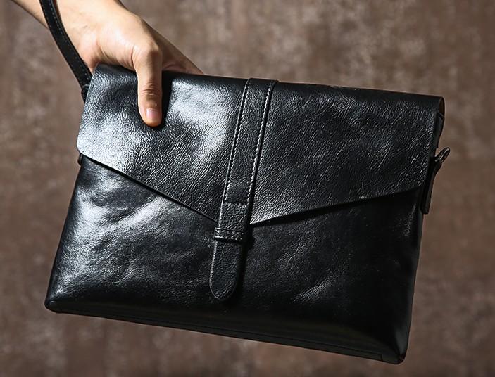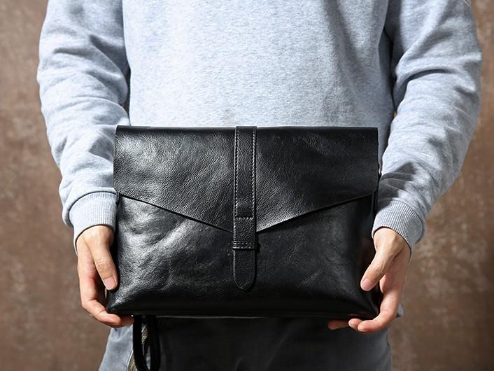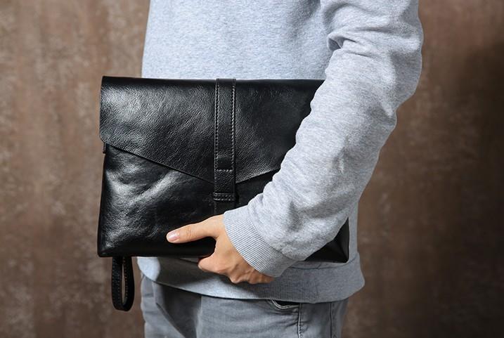 Design: Handmade Leather Mens Clutch Cool Slim Wallet Zipper Clutch Wristlet Bag Wallet for Men