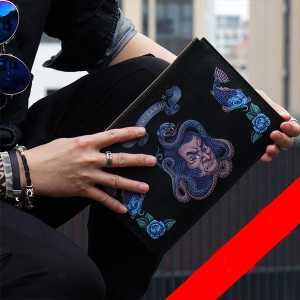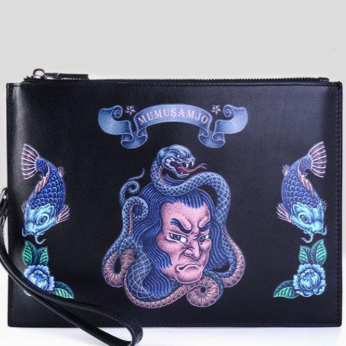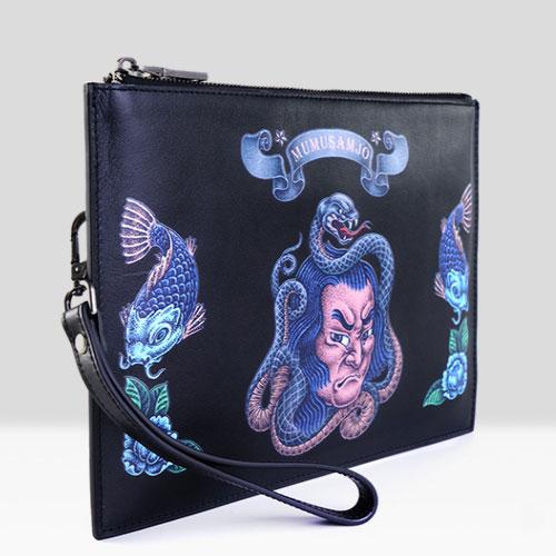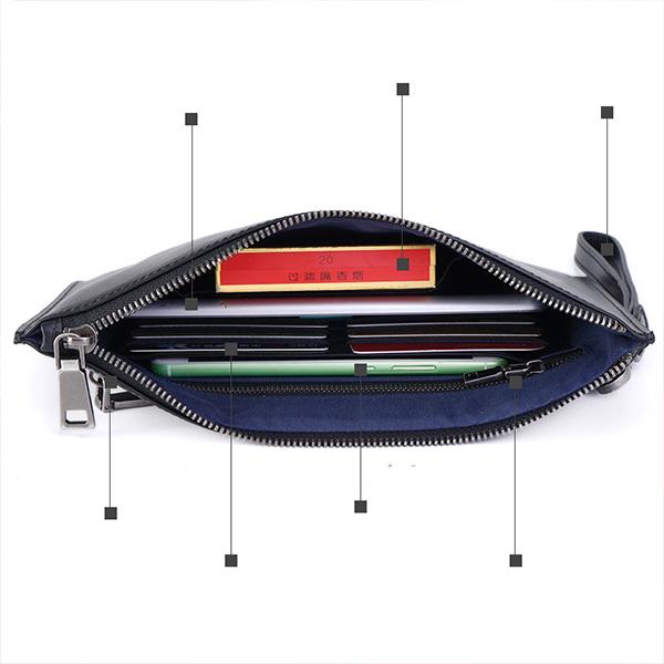 Design: Handmade Leather Mens Clutch Cool Slim Wallet Zipper Clutch Wristlet Wallet for Men
