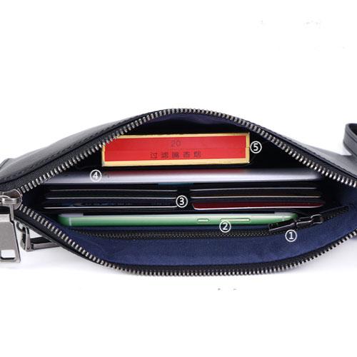 Slots: 1 phone slot, 6 card holders, 2 zip slots, 1 ipad slot