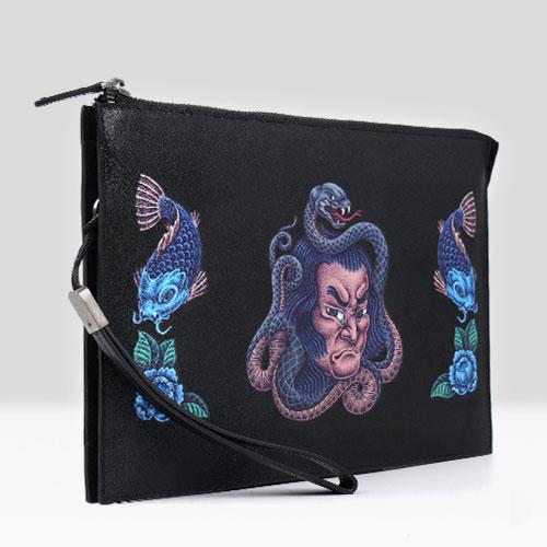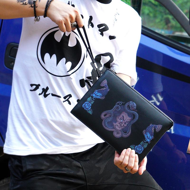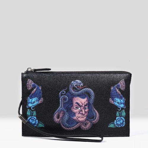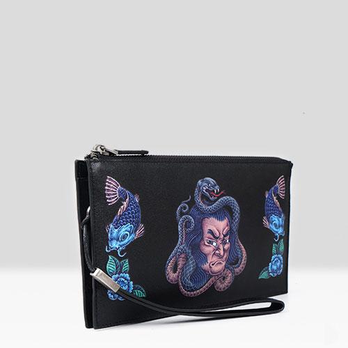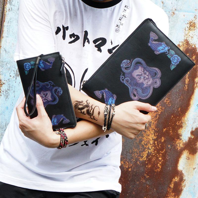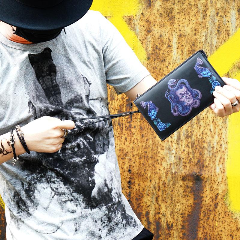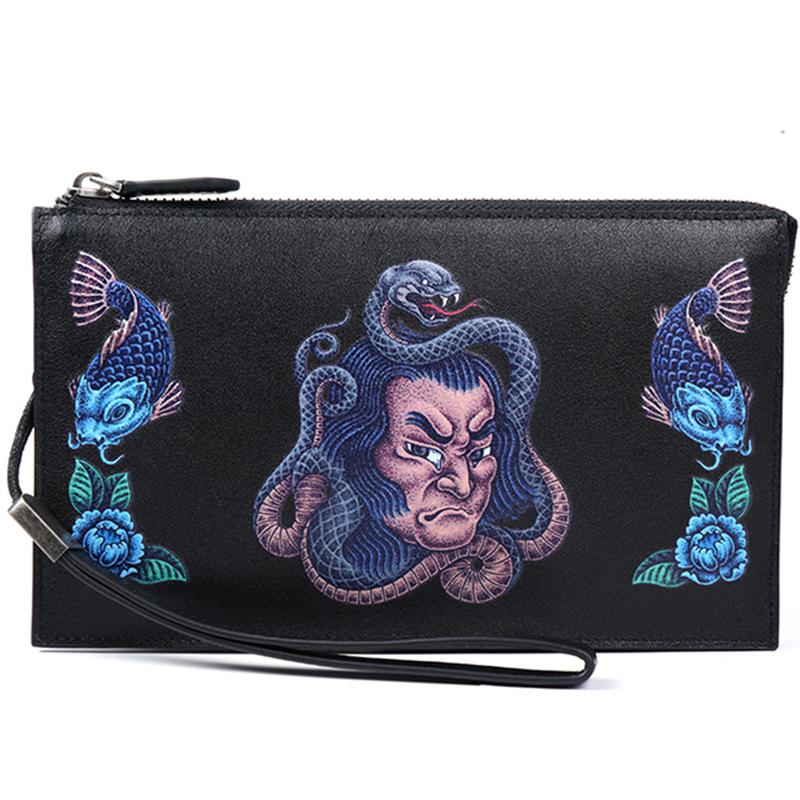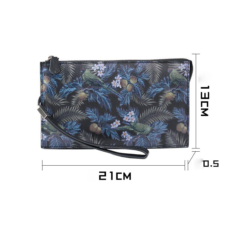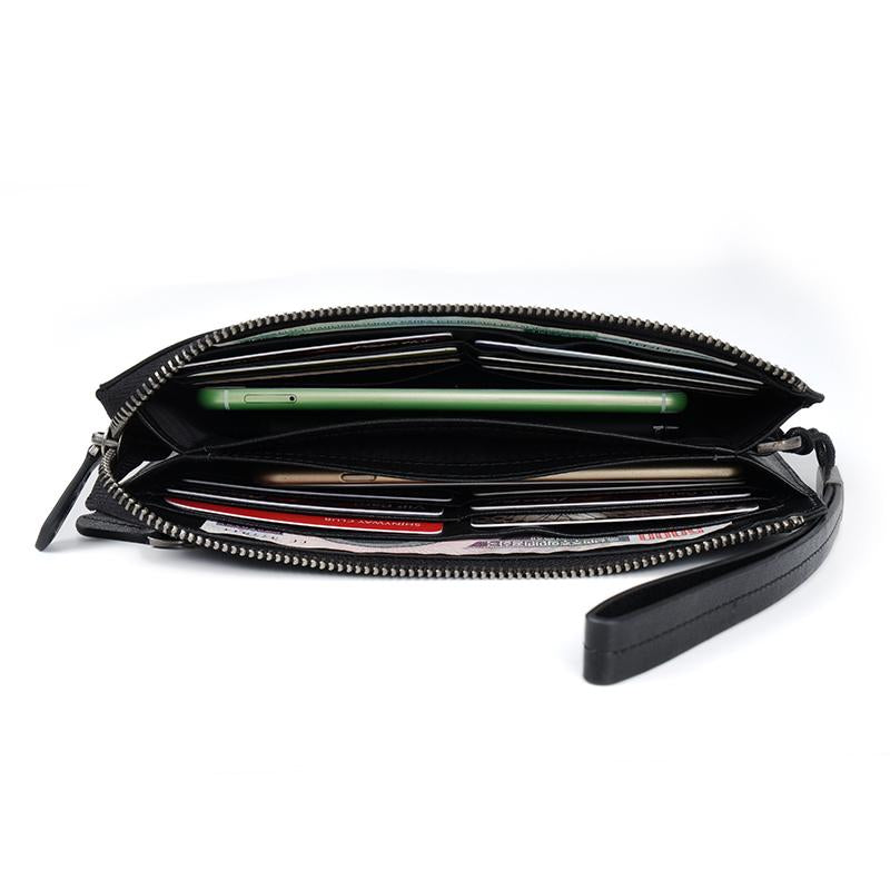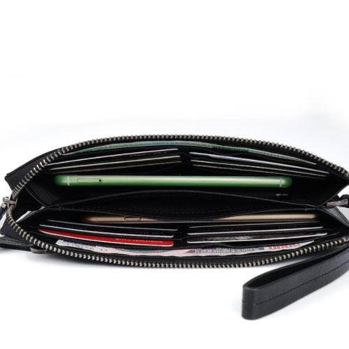 Design: Handmade Leather Mens Clutch Cool Slim Wallet Zipper Clutch Wristlet Wallet for Men