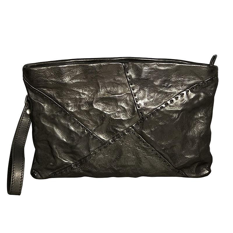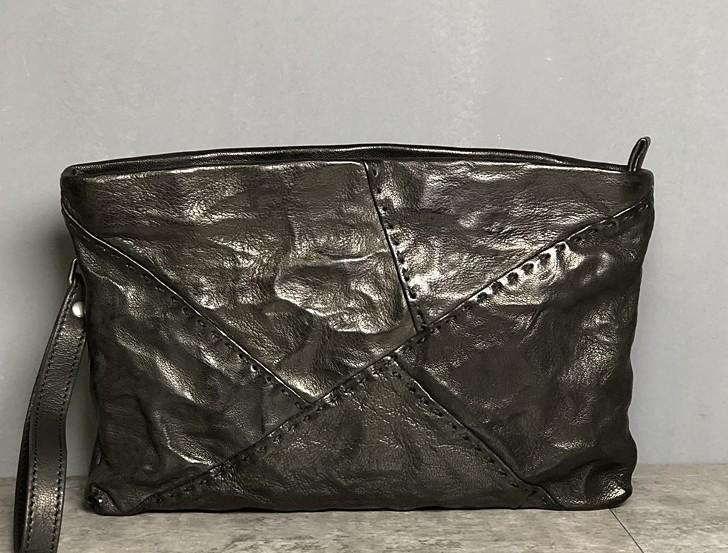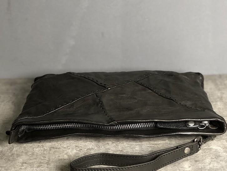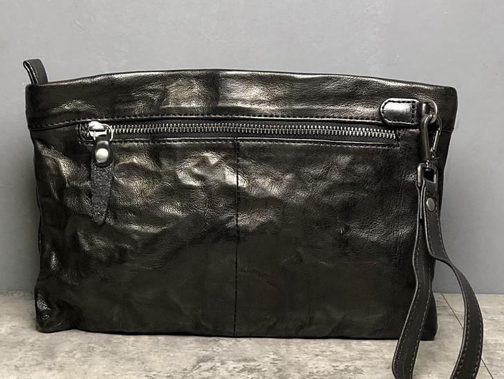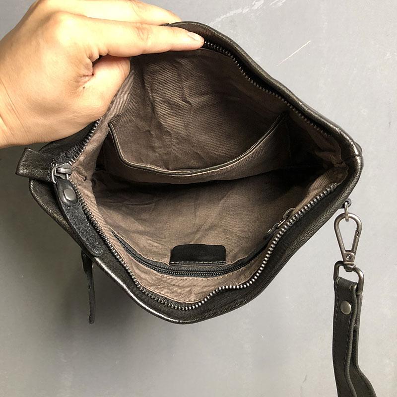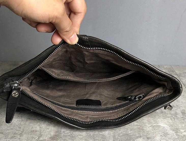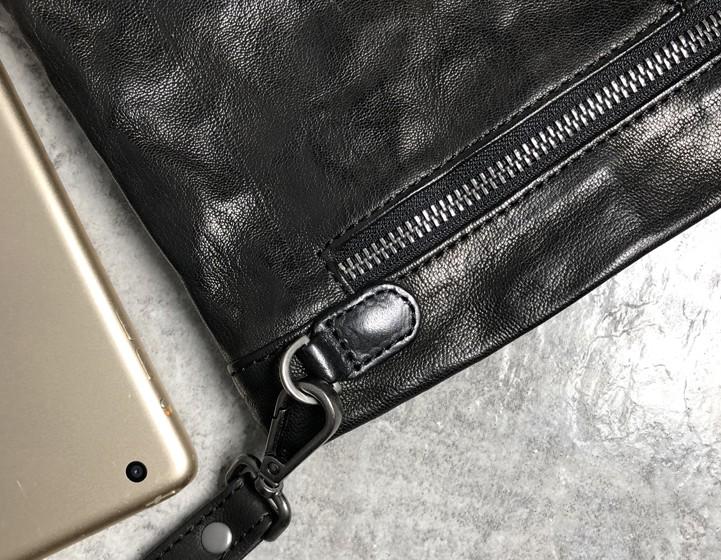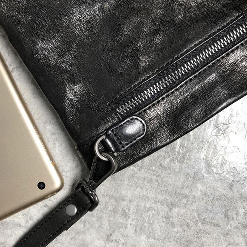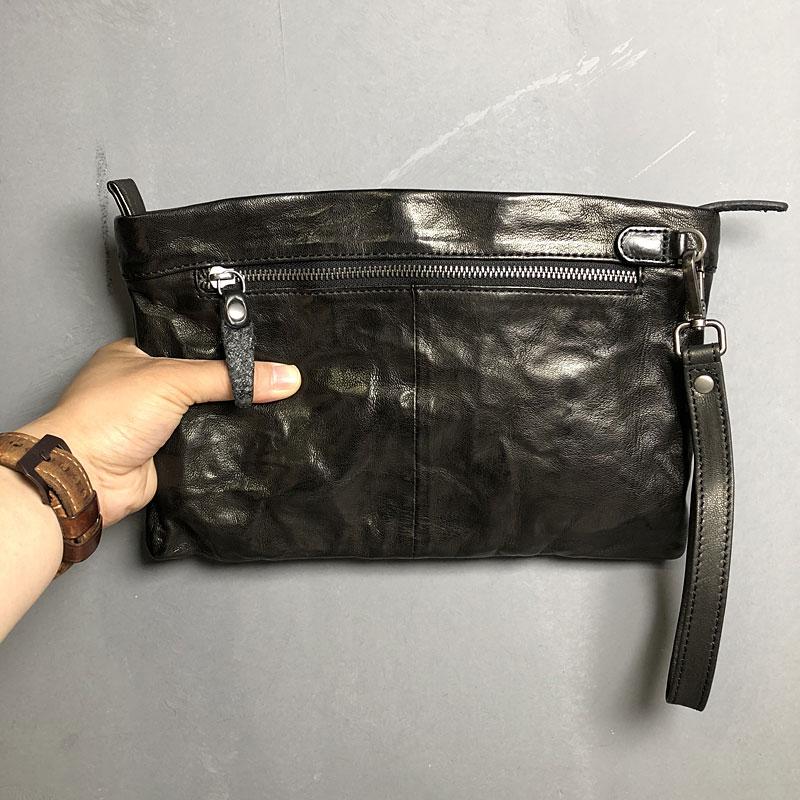Design: Handmade Leather Mens Clutch Cool Slim Wallet Zipper Clutch Wristlet Wallet for Men